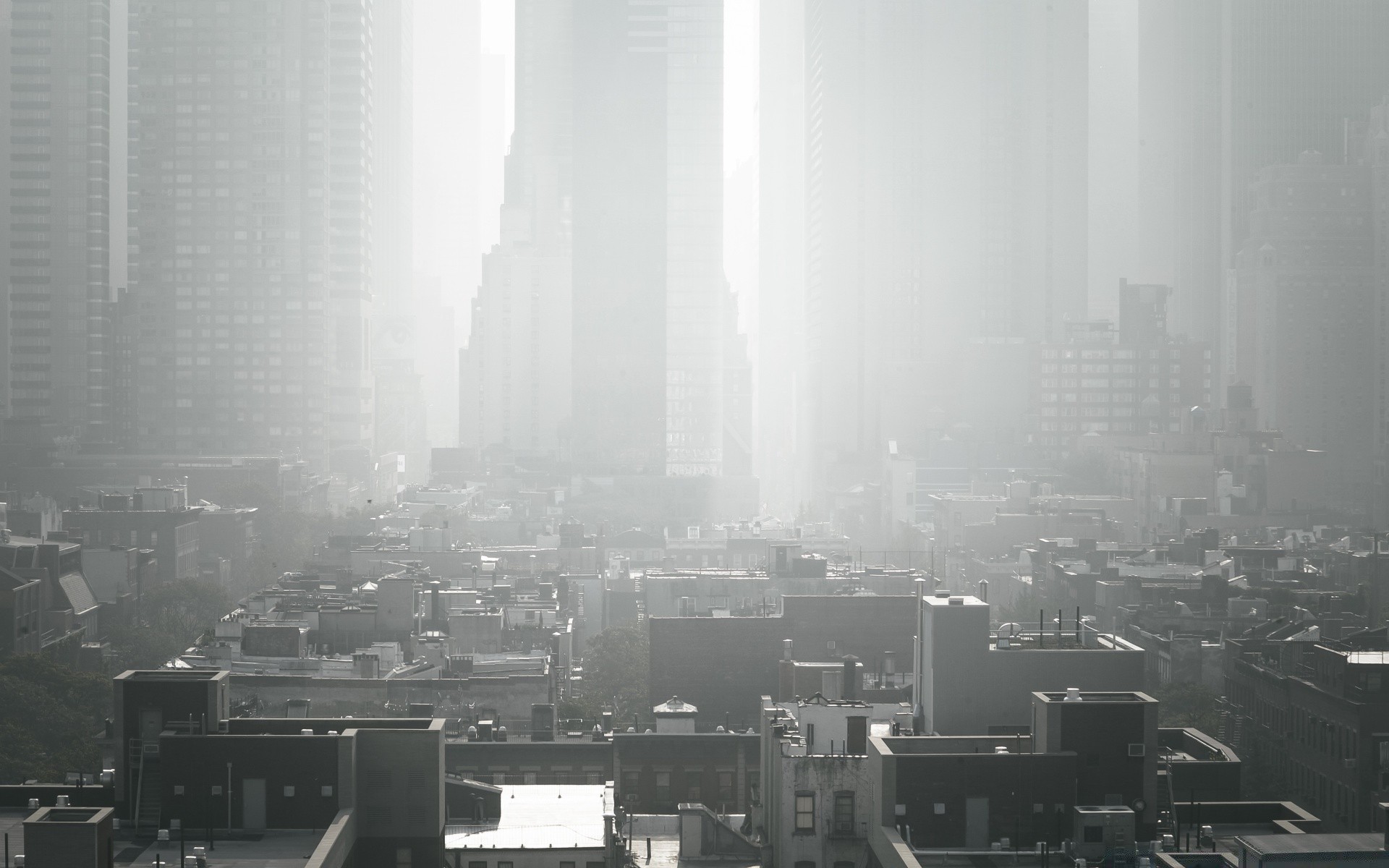 Gratte-ciels blancs noirs sur le fond de toute la ville