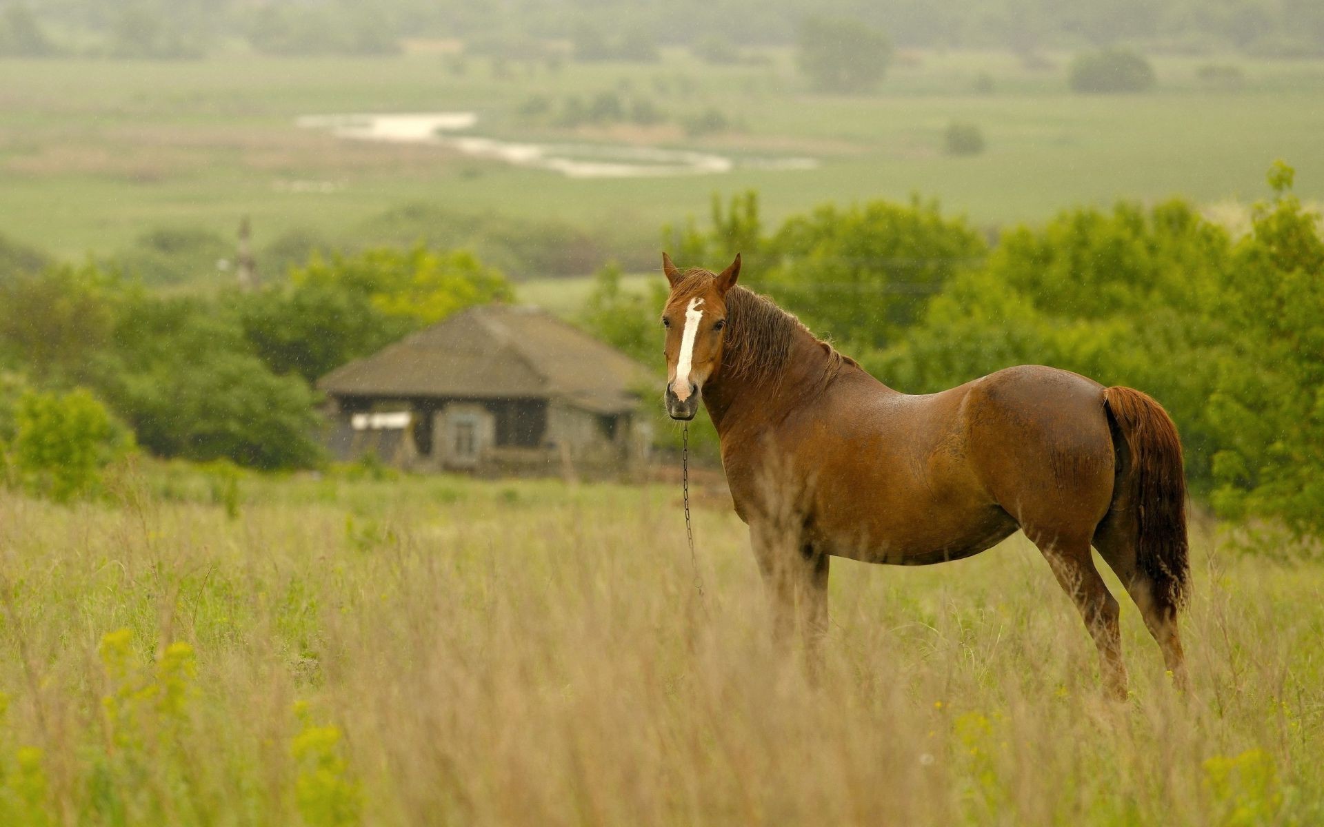 Cheval sur le fond d un village local