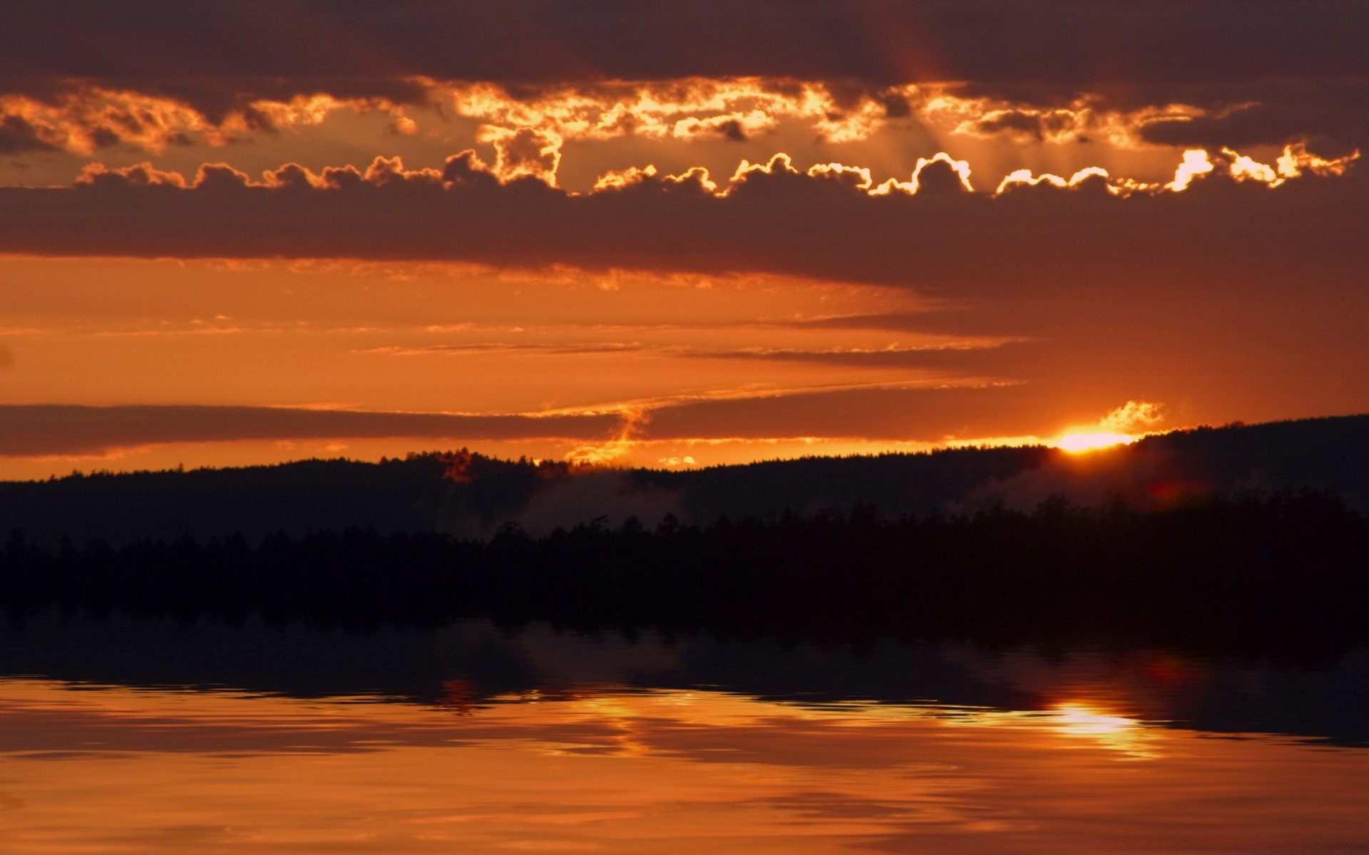 Coucher de soleil tranquille sur la surface de l'eauCoucher de soleil tranquille sur la surface de l'eau