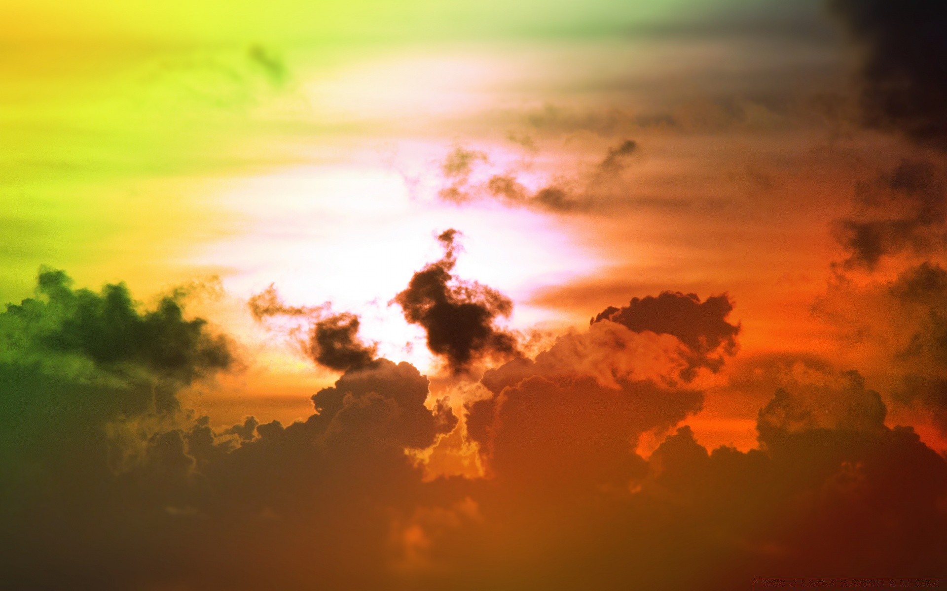 Coucher de soleil dans les couleurs vives de l'arc-en-cielCoucher de soleil dans les couleurs vives de l'arc-en-ciel