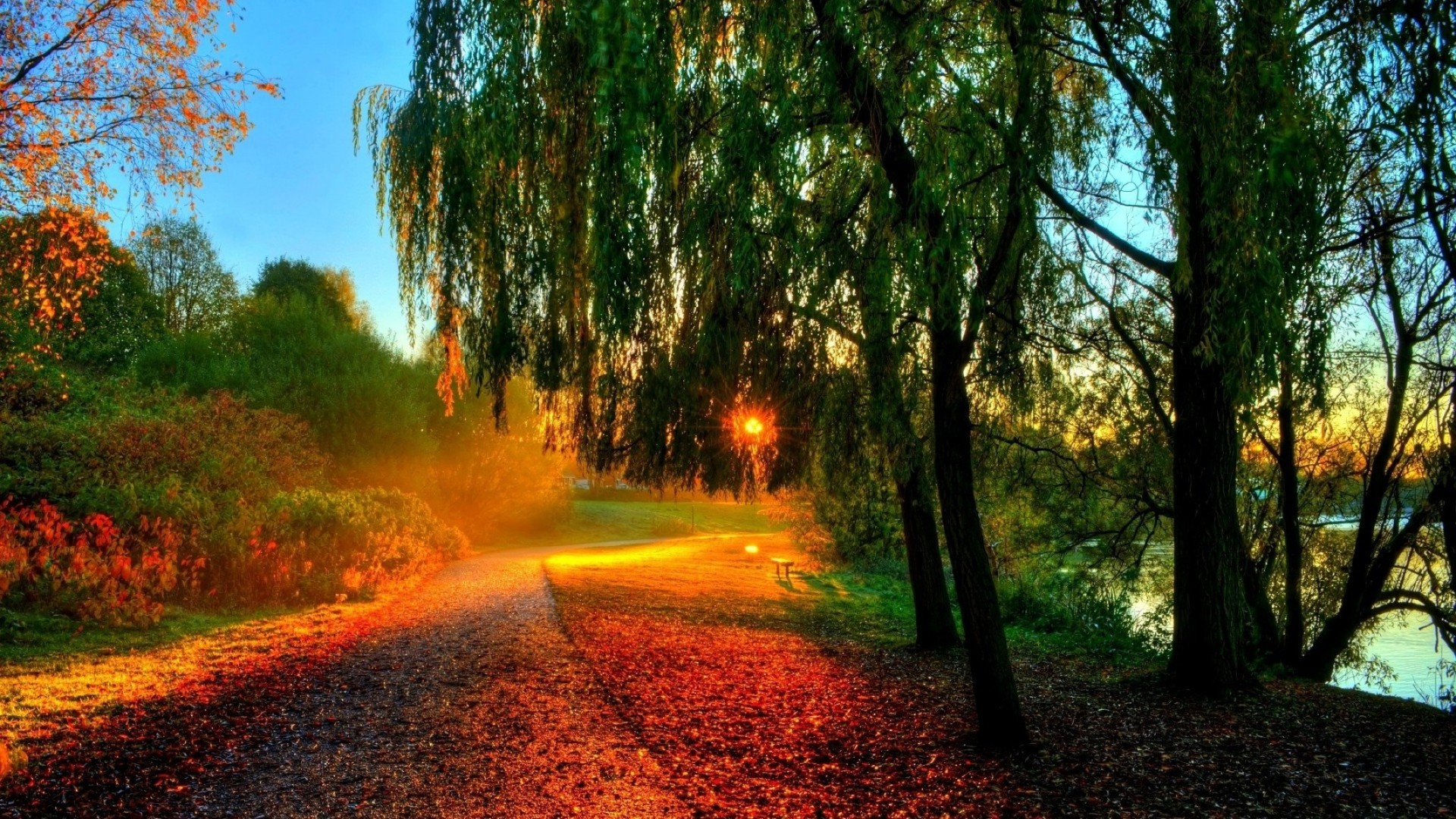 Nature automnale, arbres et coucher de soleil