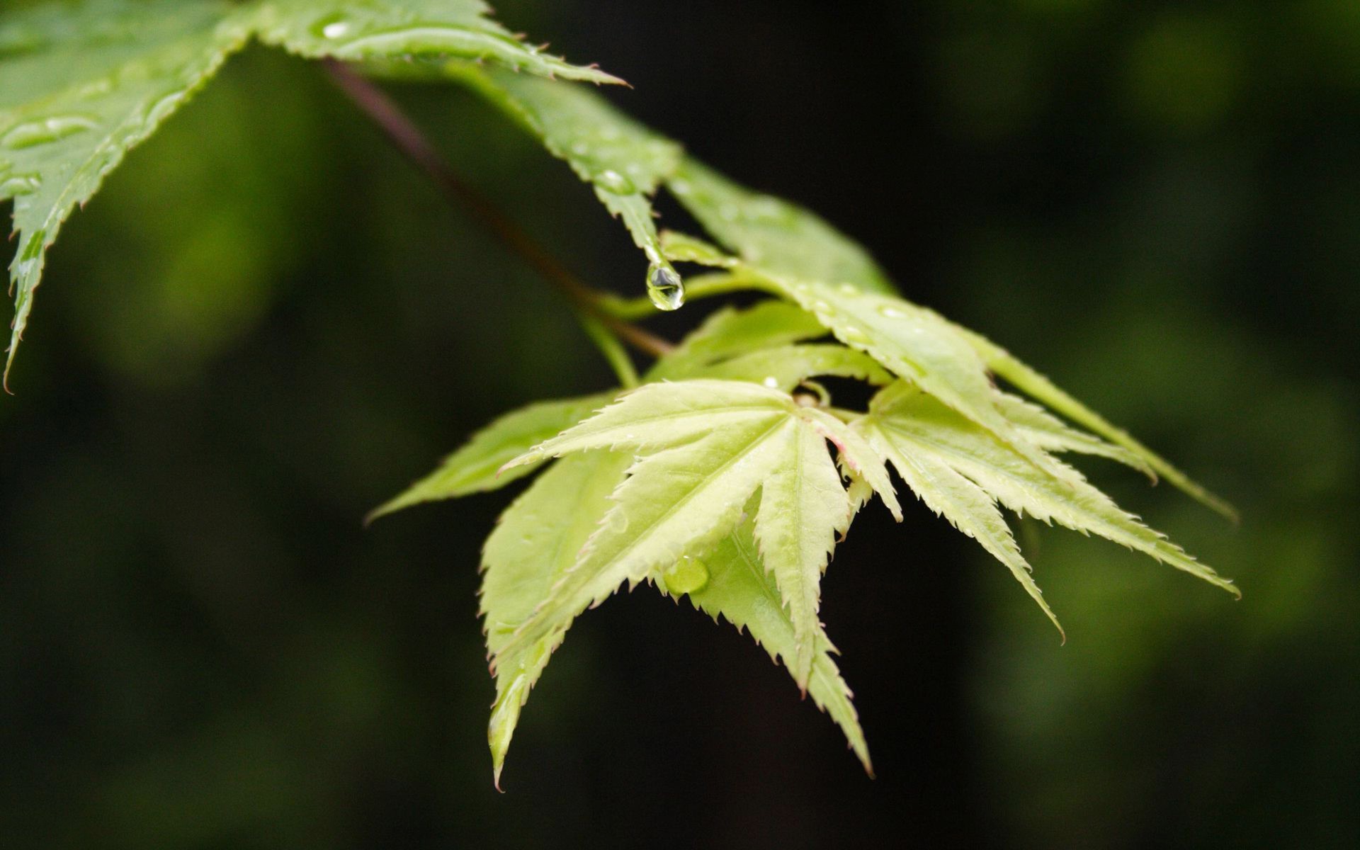 Feuilles d'érable japonais avec des gouttes de pluie