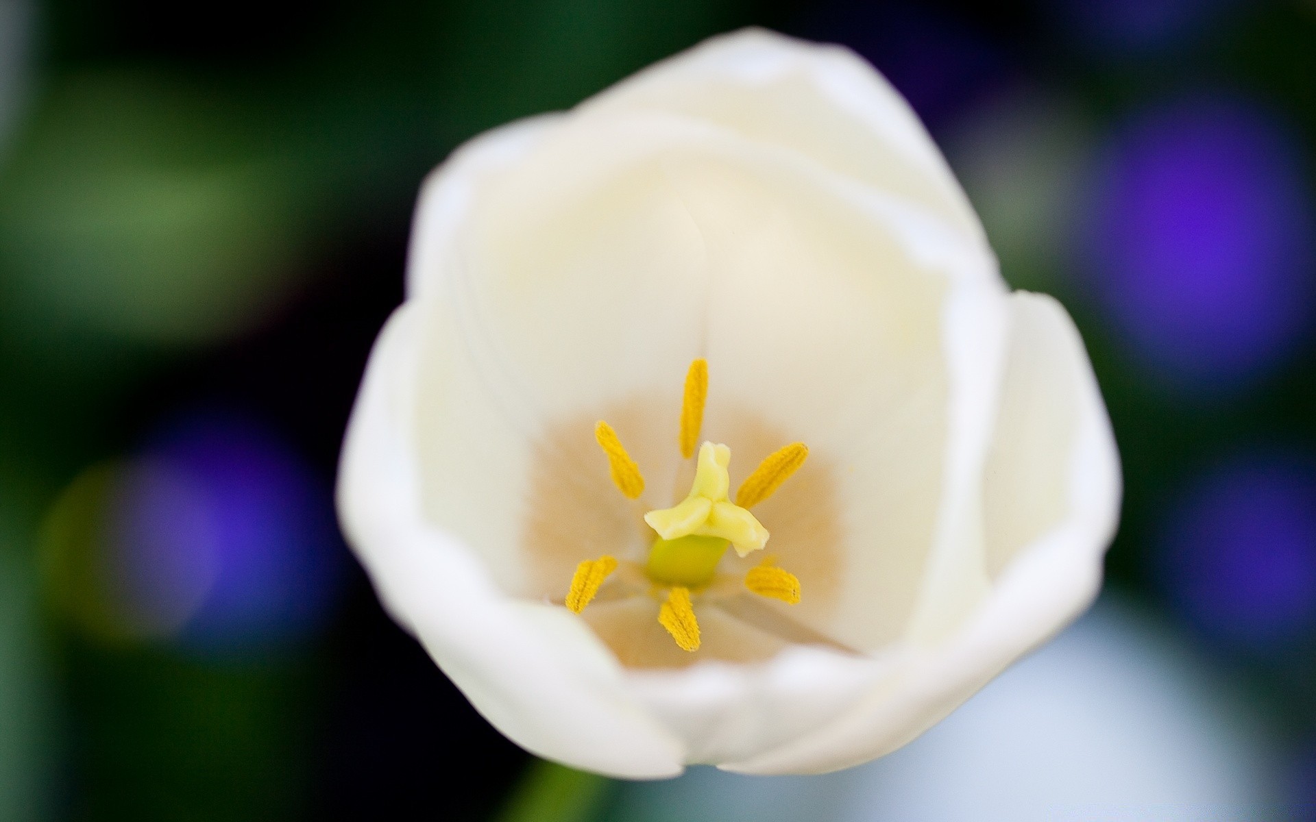 Macrophotographie. Fleur. Étamines et pistils. Flou