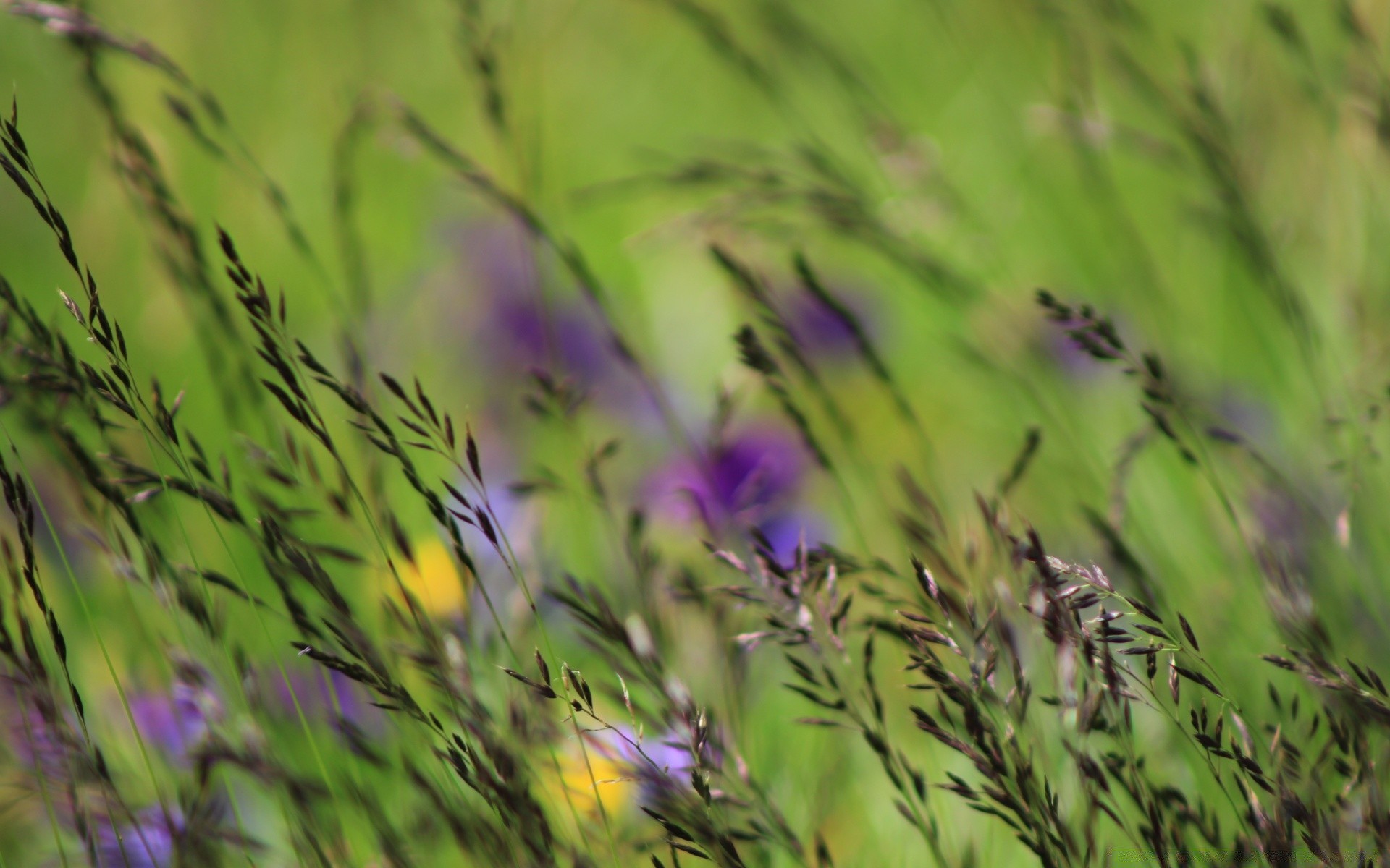 Coucher de soleil sur le lac couvert d'herbe et de petites fleursCoucher de soleil sur le lac couvert d'herbe et de petites fleurs