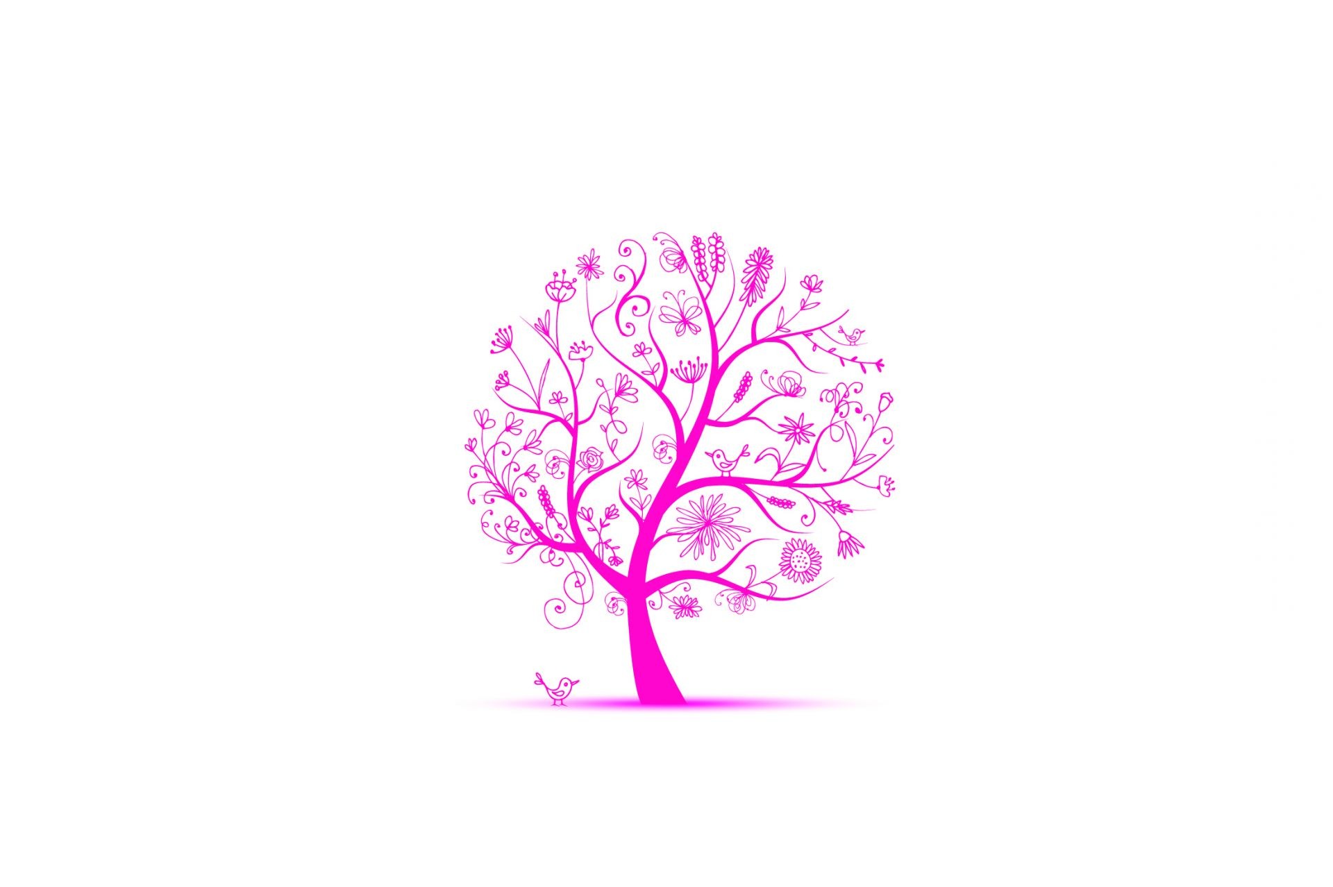 Arbre rose sur fond blanc