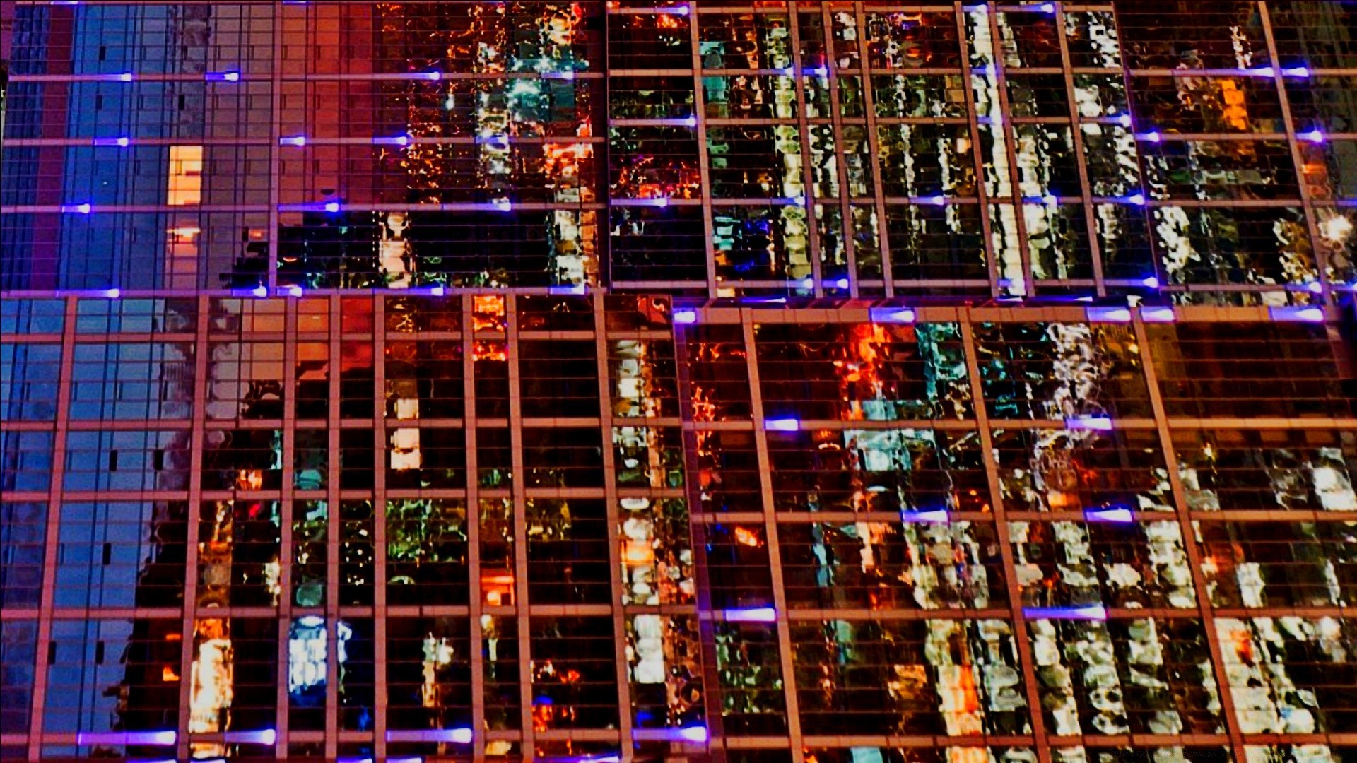 Reflet pittoresque du ciel dans les fenêtres d'un immeuble de plusieurs étages