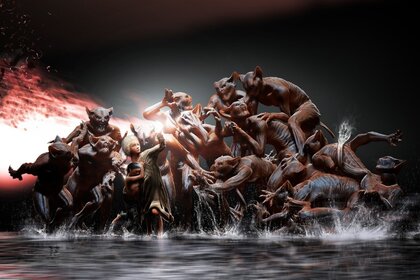 Performance du Festival avec le mouvement, les concours et l eau