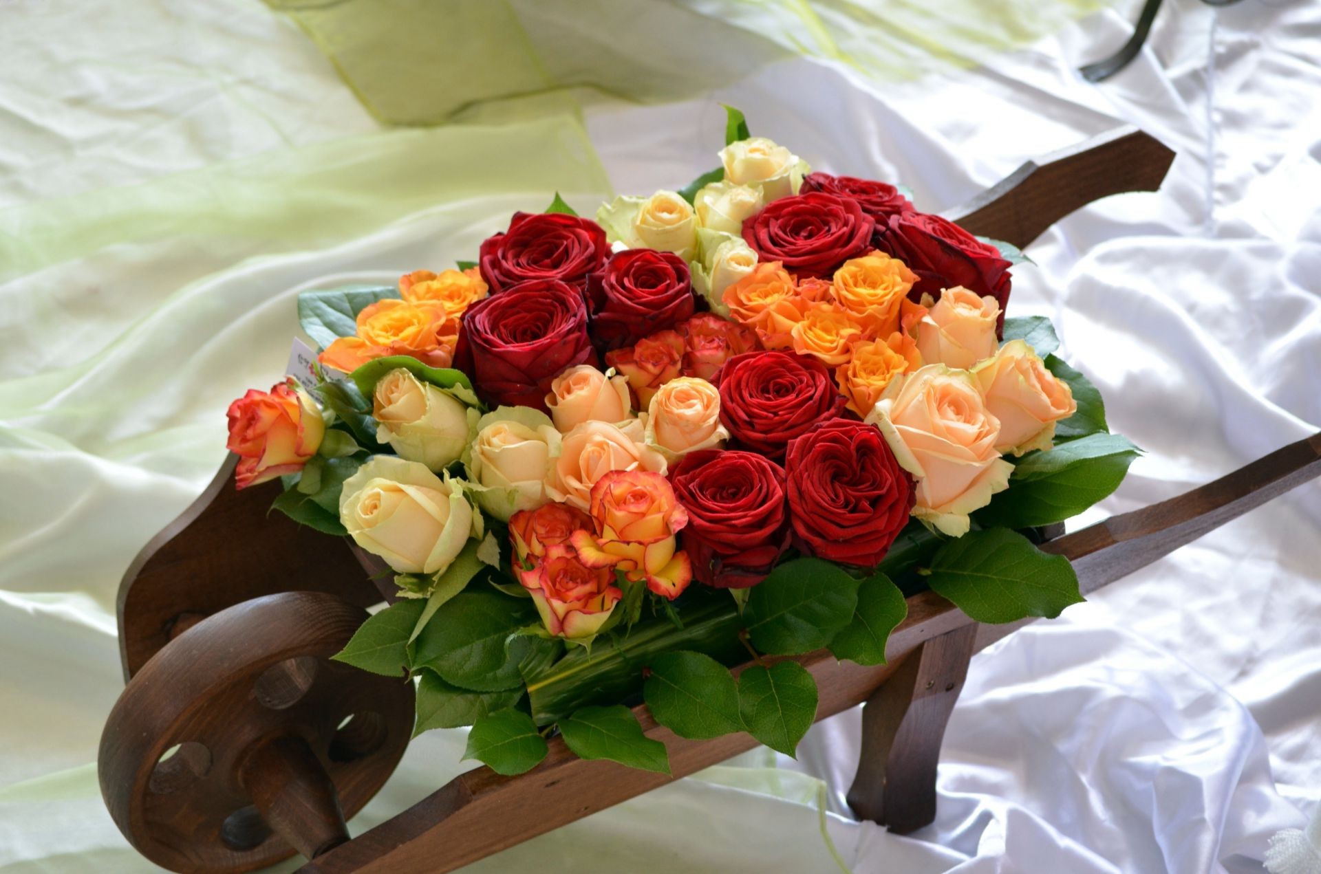 Composition de roses et de tulipes