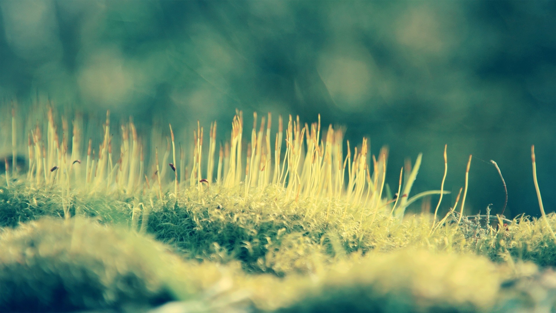 Herbe verte et petites fleurs jaunes dans le champ sous les rayons du soleil