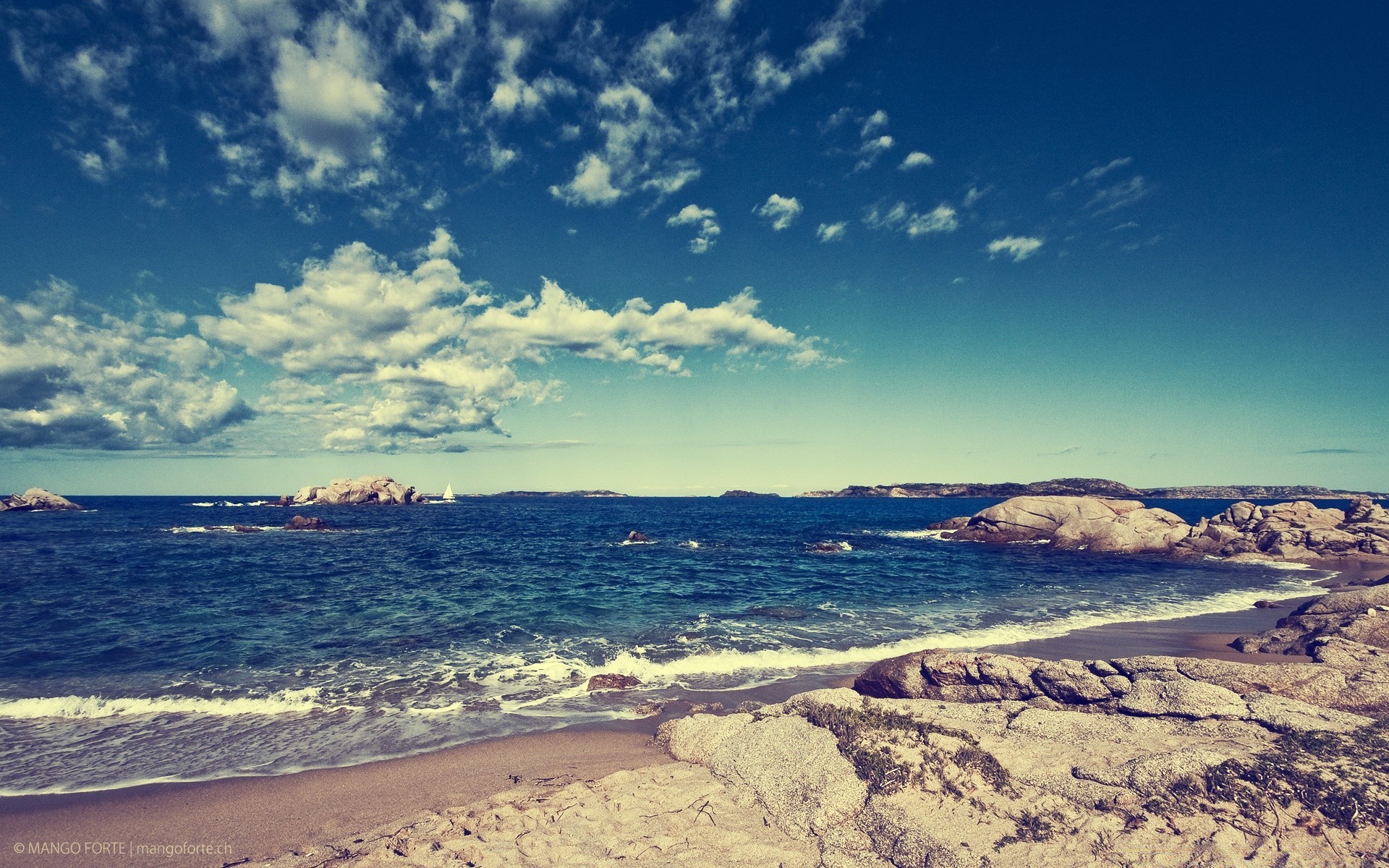 Pierres au bord de la mer. Beau ciel dans la paume de votre main
