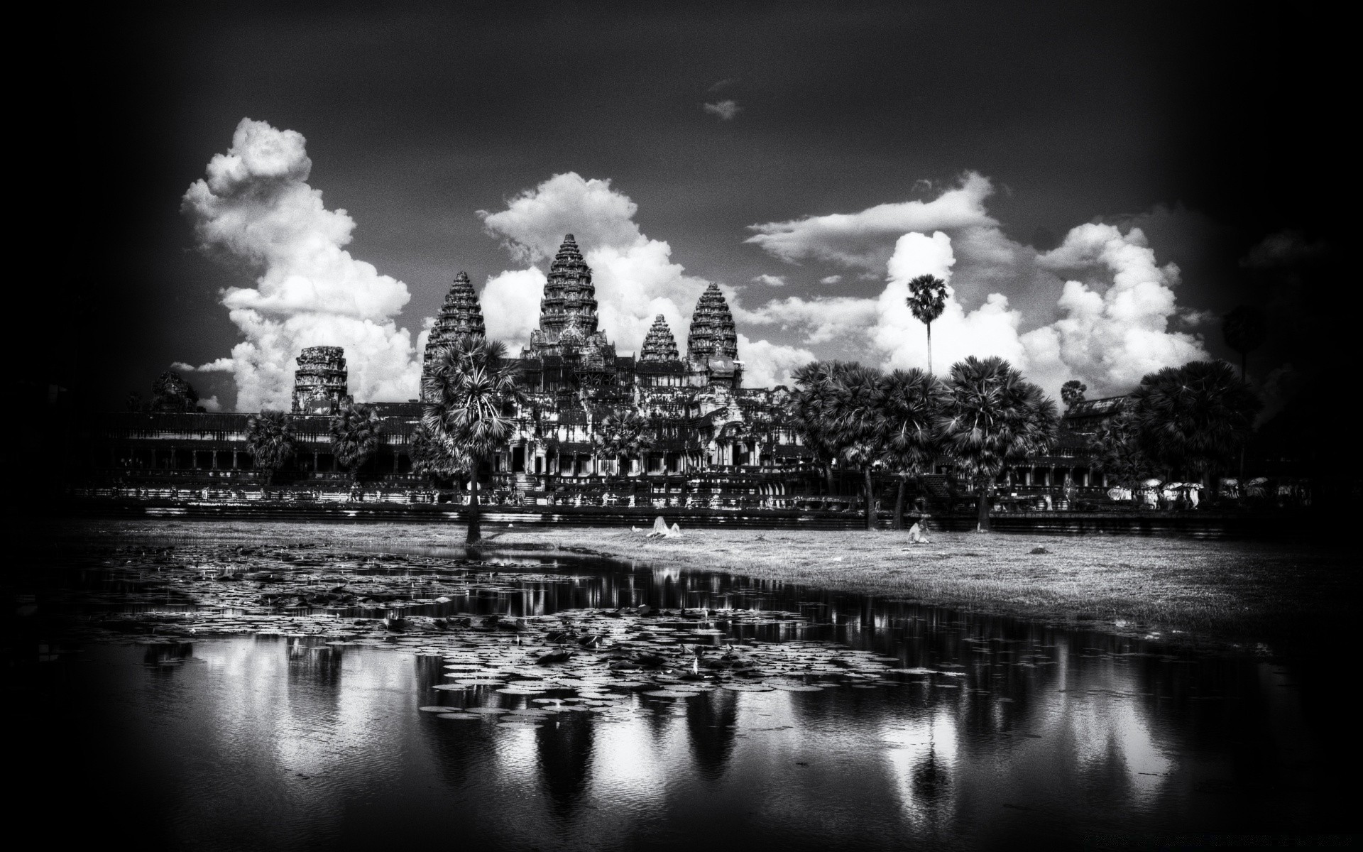 Plan d'eau dans la ville dans la gamme grise
