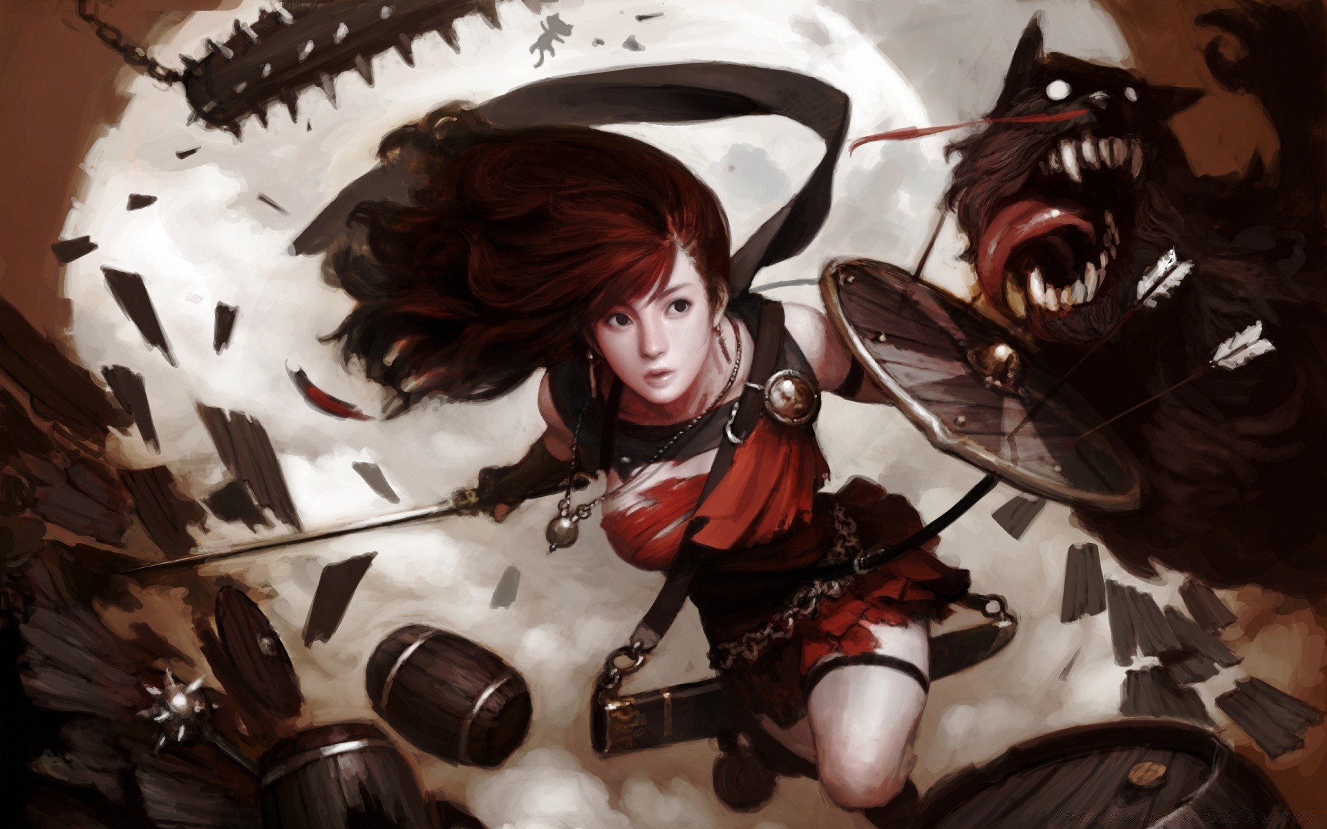 Le guerrier se Bat avec des monstres dans les ténèbres de la ville de nuit