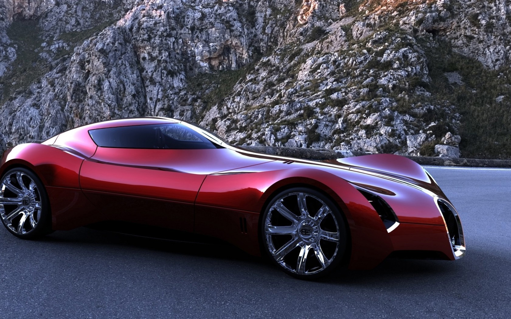 Voiture de sport rouge sur la piste de montagne