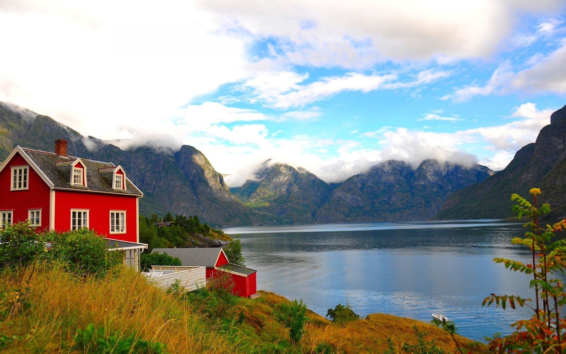 Ciel nuages maison nature bateau lac paysage montagneCiel nuages maison nature bateau lac paysage montagne