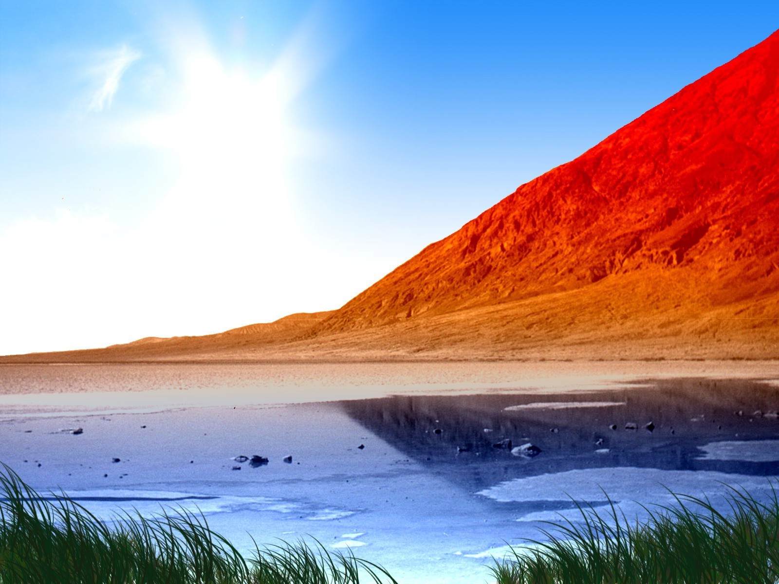 Paysage avec une fille sautant dans un champ sur fond de montagne