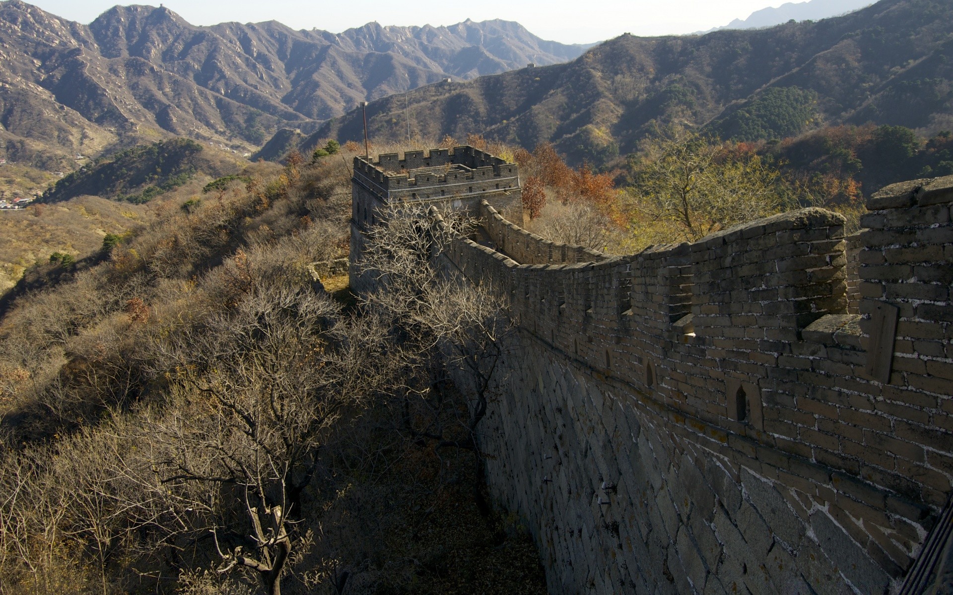 Coucher de soleil brumeux dans les montagnes de l'Asie
