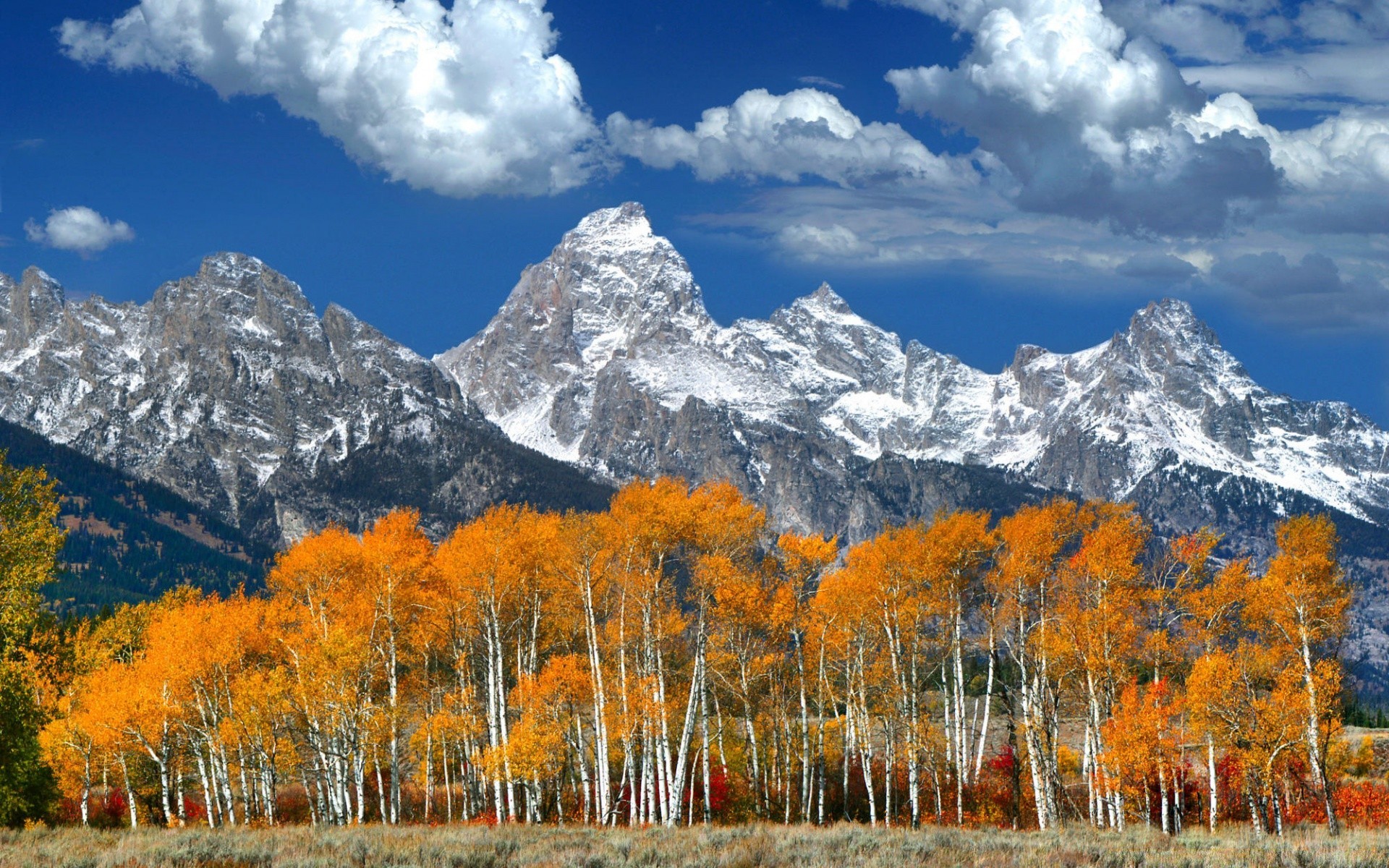 Coucher de soleil sur les montagnes, arbres puissants, prairies luxuriantes