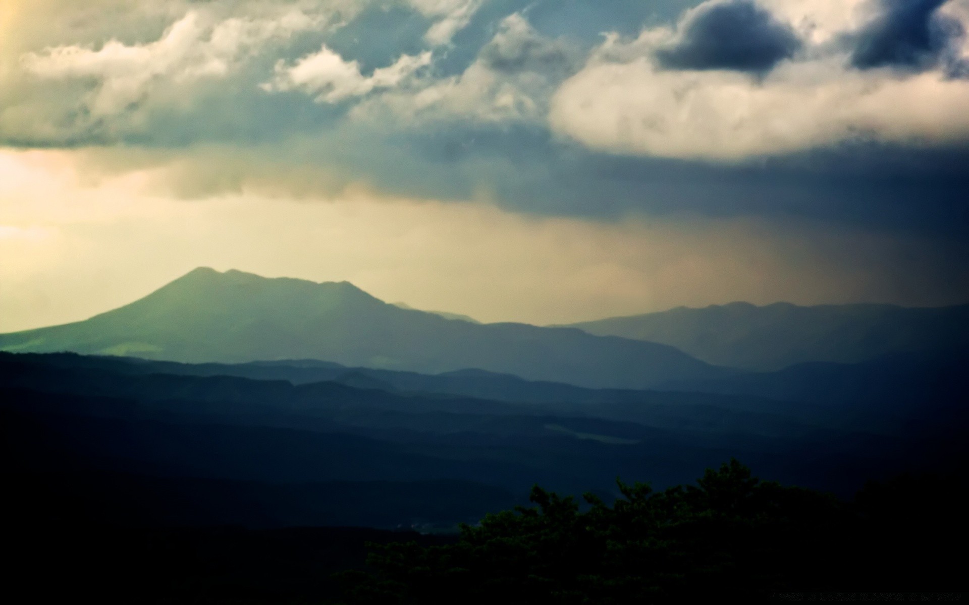 Sommets des montagnes couvertes de verdure, avec des nuagesSommets des montagnes couvertes de verdure, avec des nuages