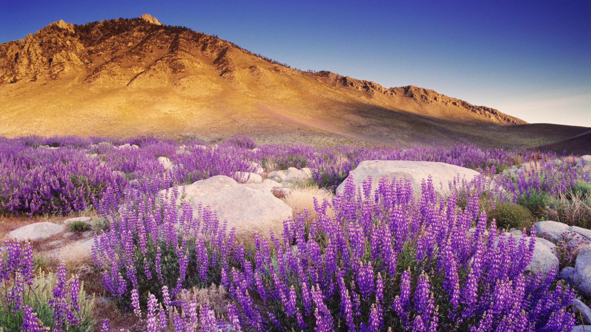 Montagnes bleues au loin, roches rouges au premier planMontagnes bleues au loin, roches rouges au premier plan