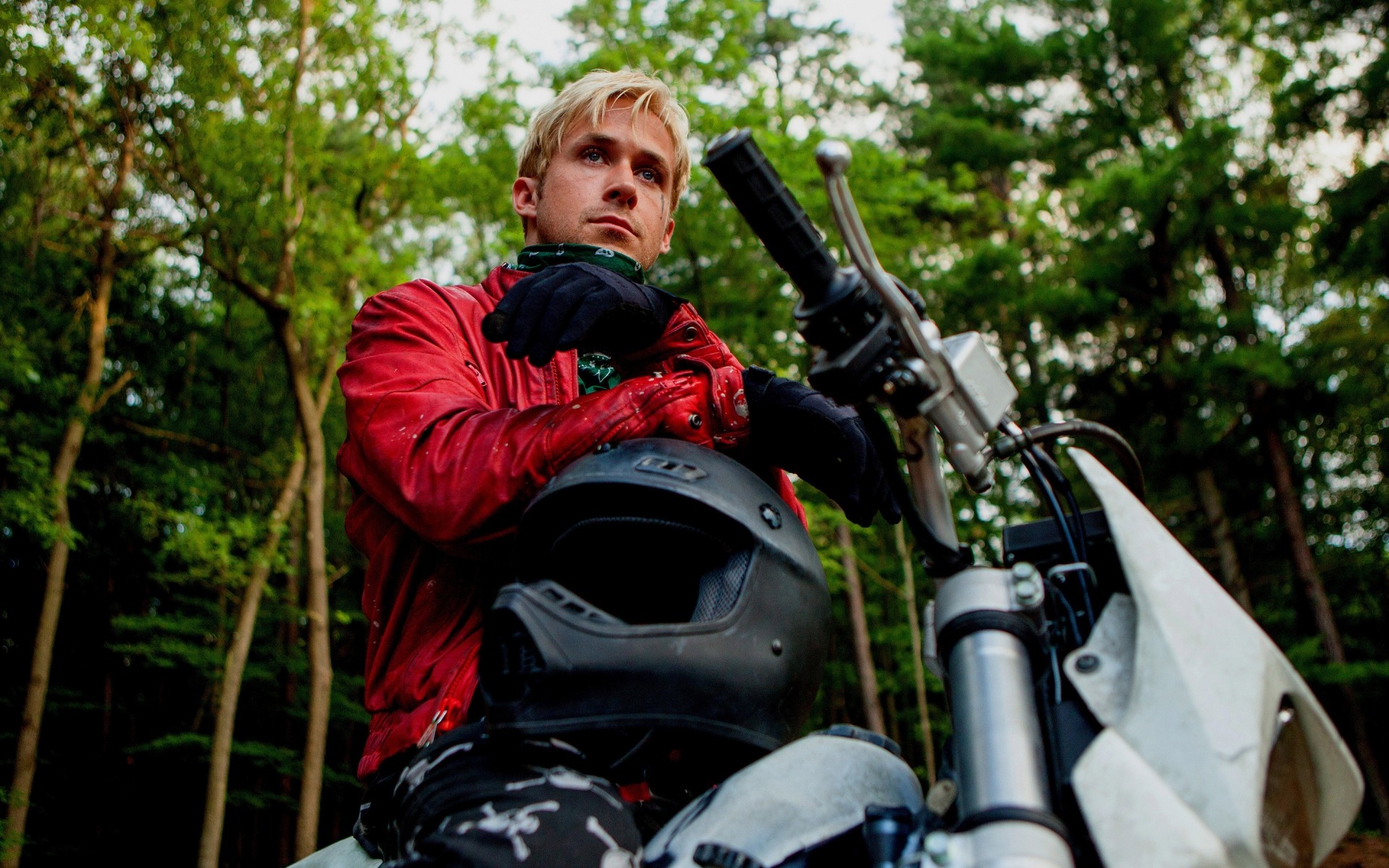 Anne Hathaway dans le rôle de Catwoman. Fille en latex assis sur une moto