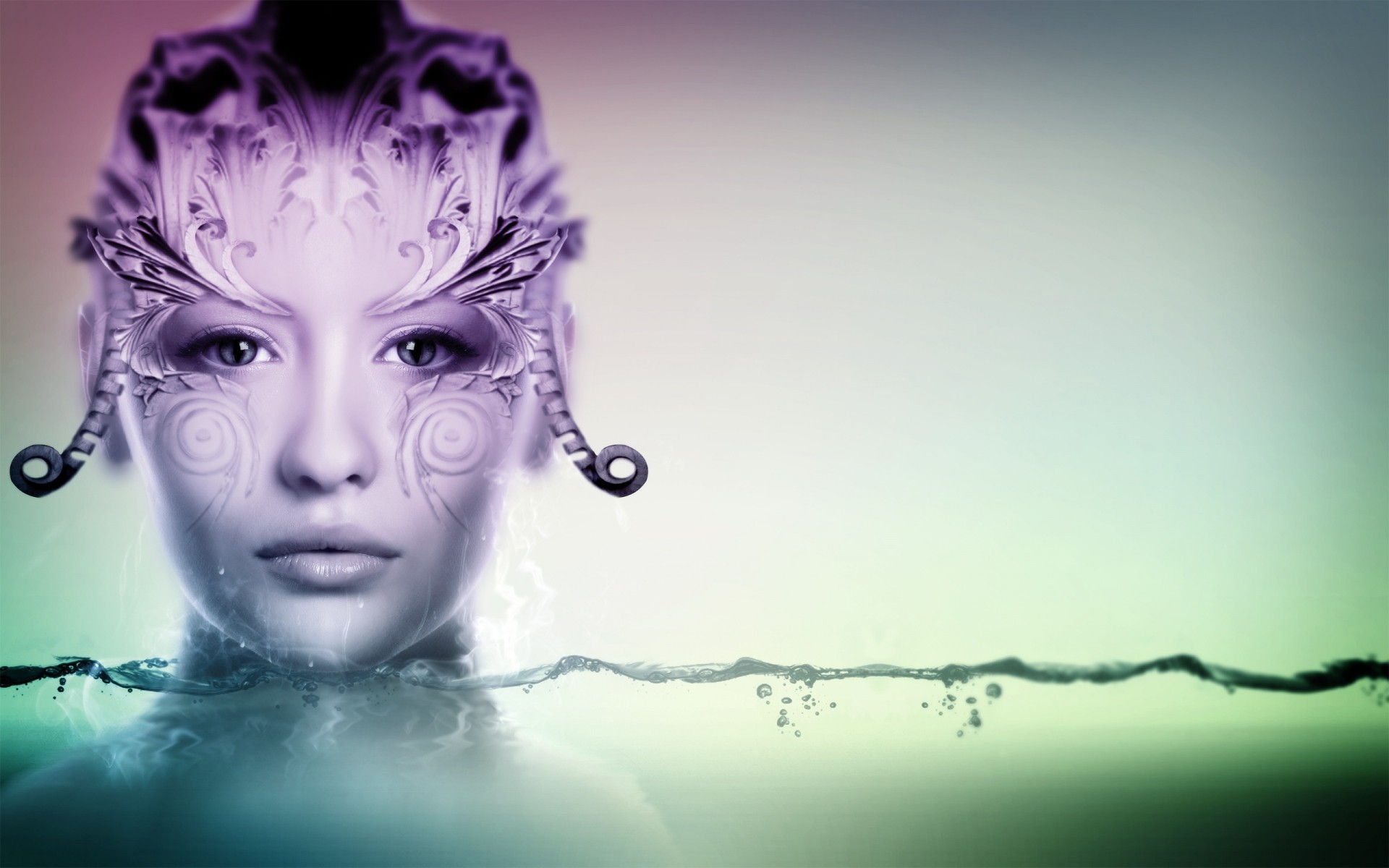 Visage de la jeune fille sur fond d eau multicolore