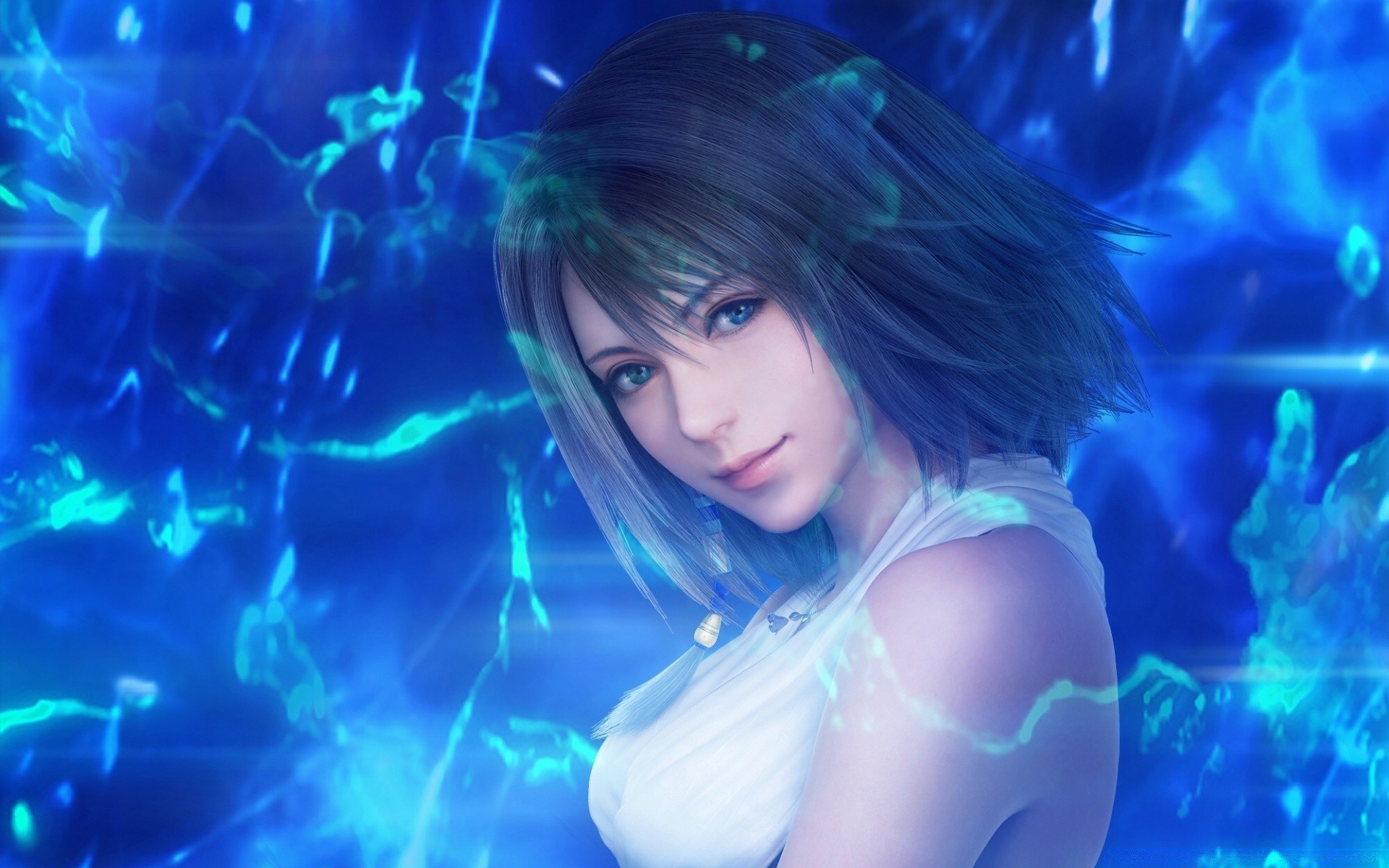 Femme avec guitare sur fond d'eau
