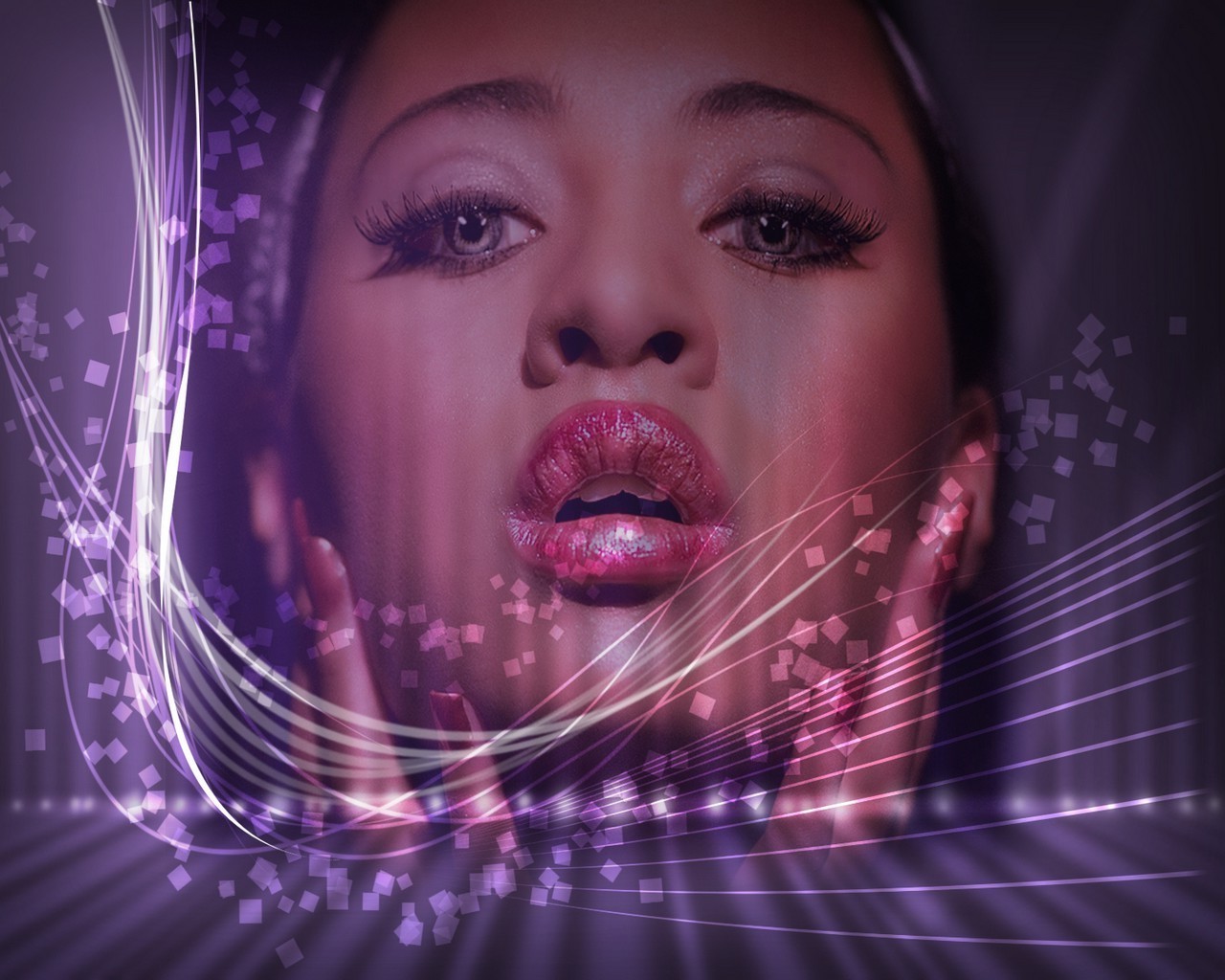 Fille avec des lèvres peintes de couleurs vives et égaliseur