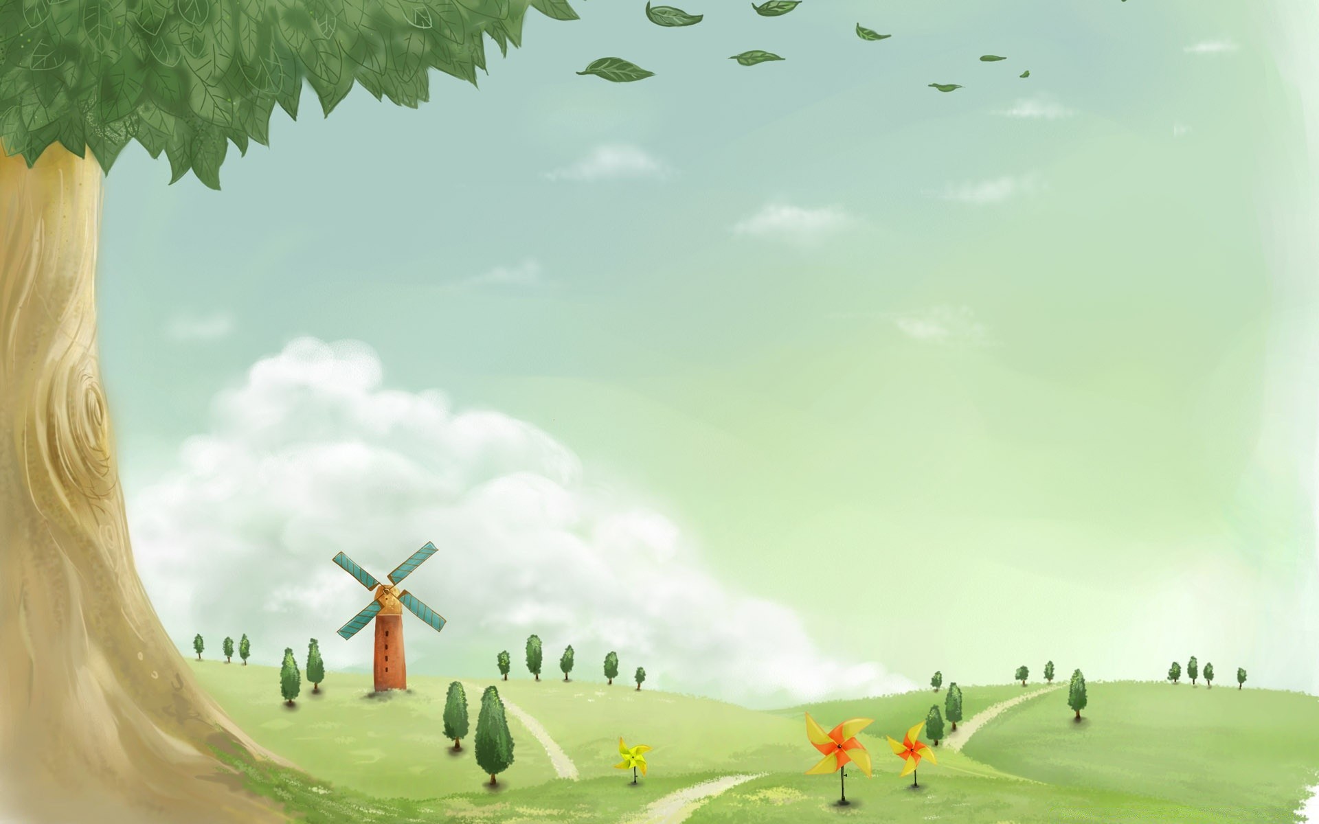 Dessin d'été de la nature avec des fleurs et des arbresDessin d'été de la nature avec des fleurs et des arbres