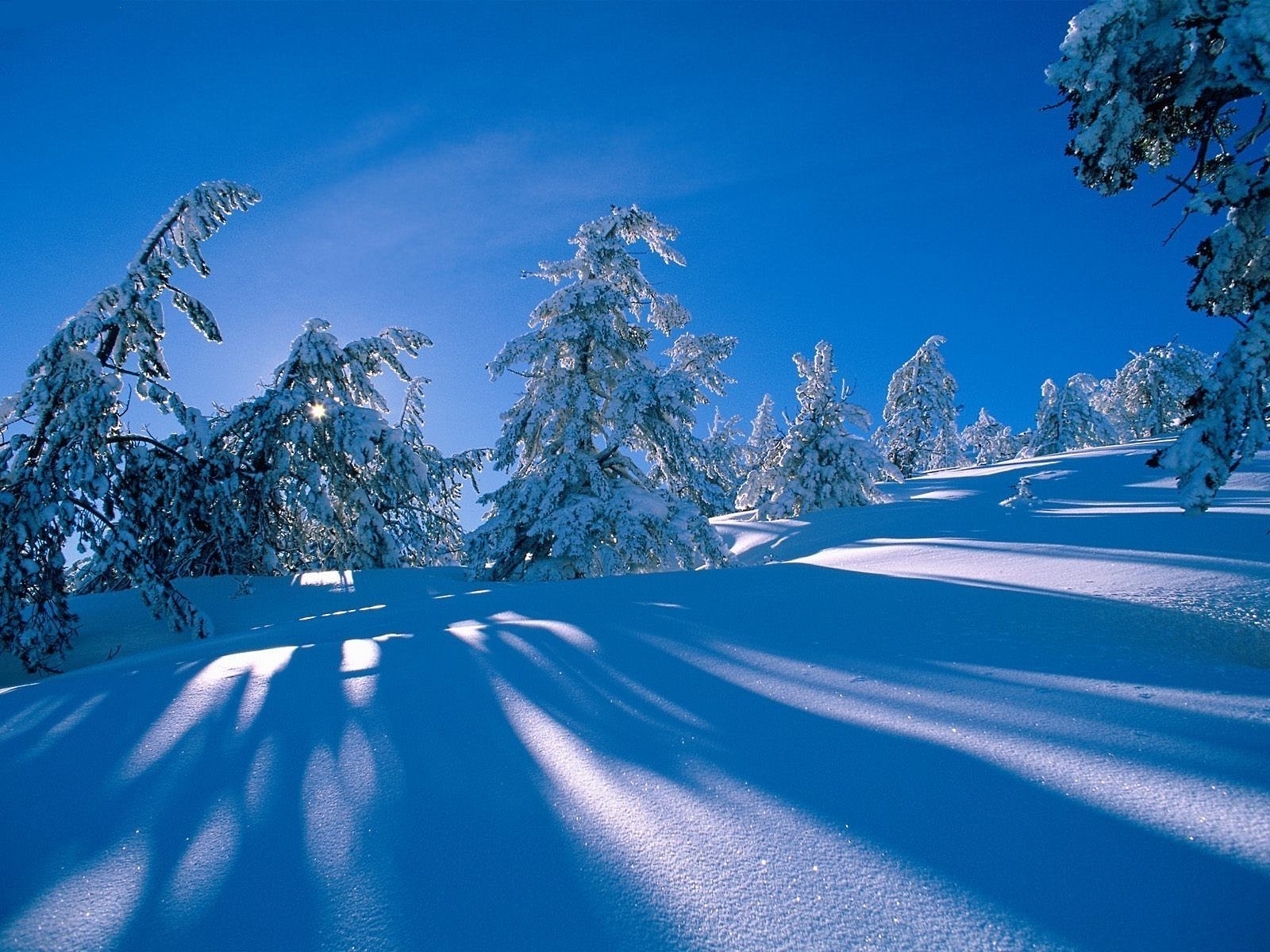 Arbres enneigés dans les montagnes par une journée d'hiver ensoleilléeArbres enneigés dans les montagnes par une journée d'hiver ensoleillée