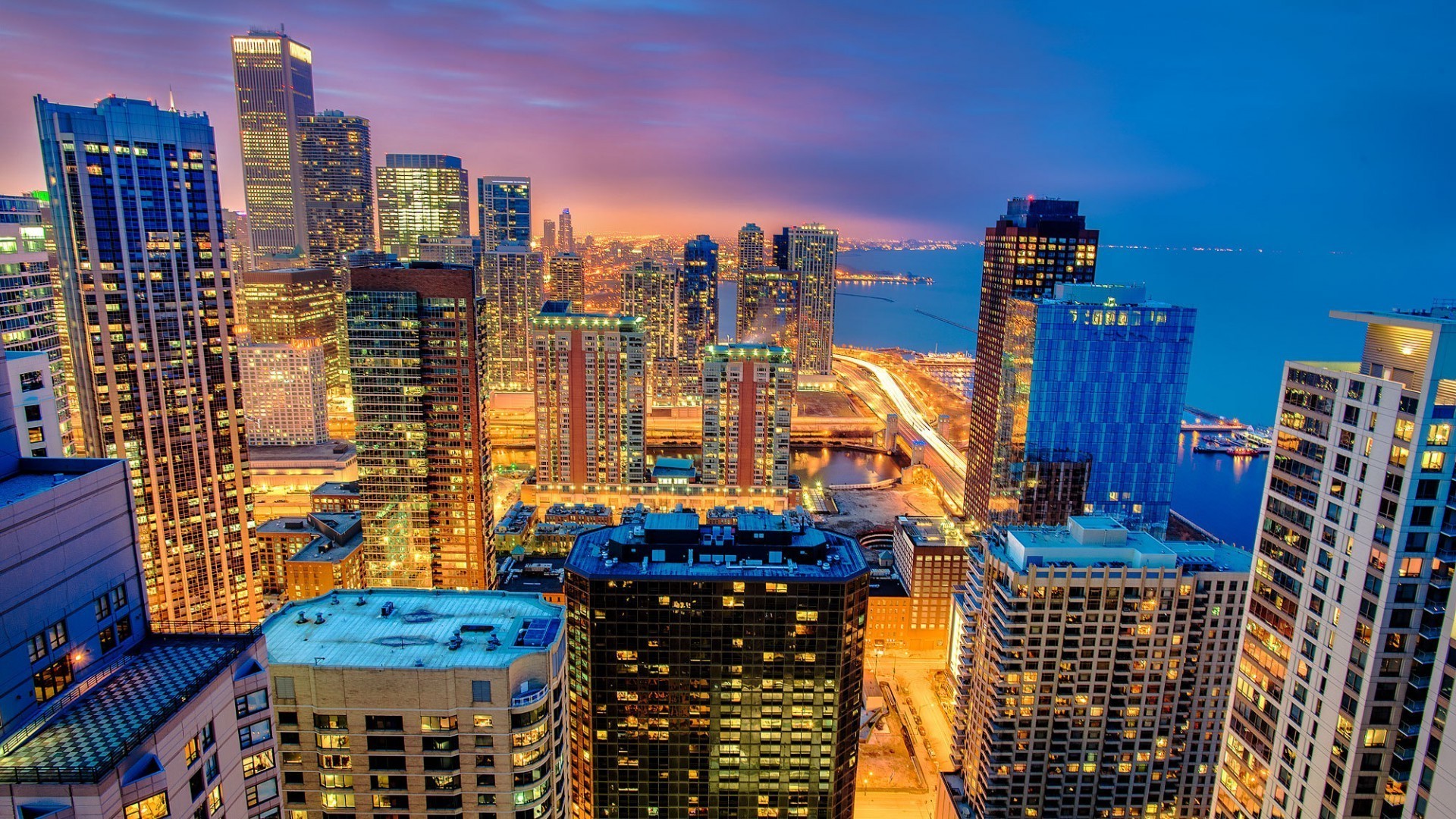 Gratte-ciel de la ville au coucher du soleil dans le centre-ville