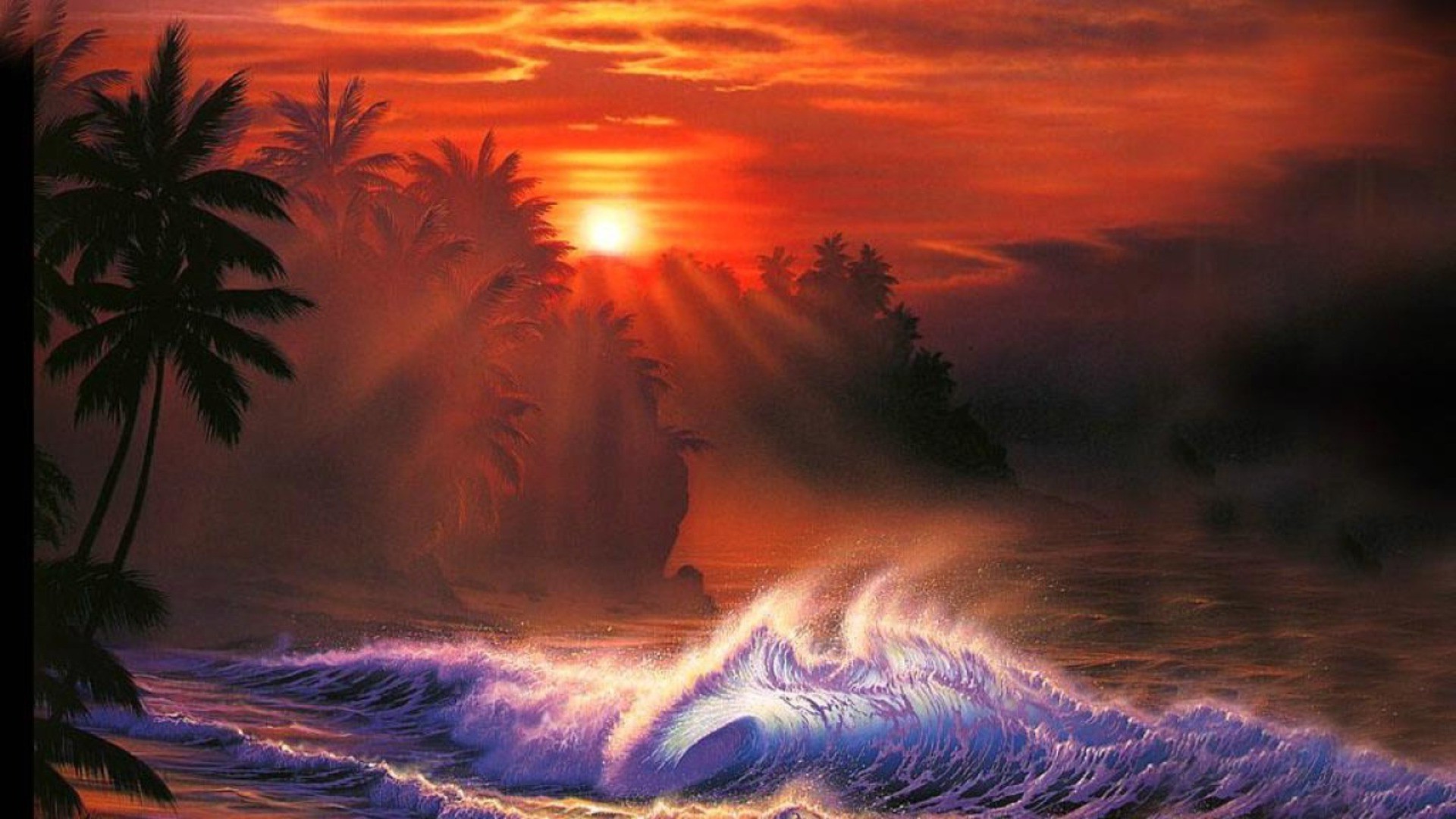 Image d'un pont tombé dans l'océan sur fond de coucher de soleil