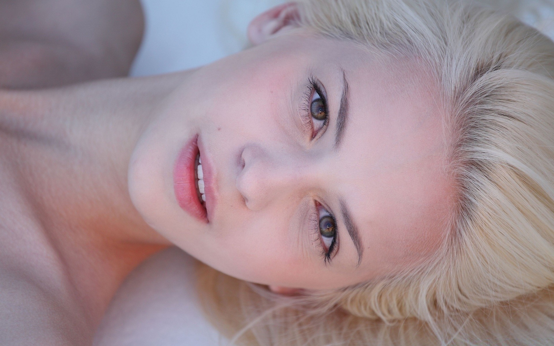 Portrait d'une jeune fille blonde avec maquillage rouge