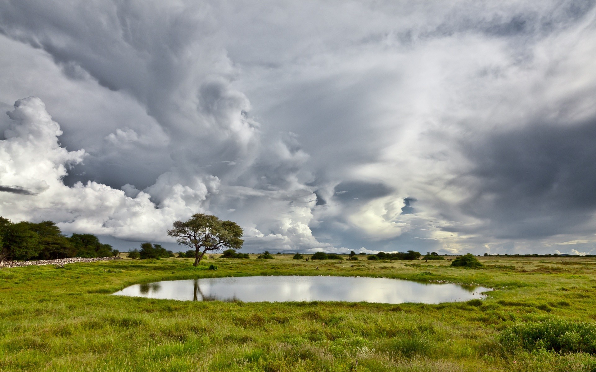 Ciel sombre sur la route dans un champ avec un arbre solitaire