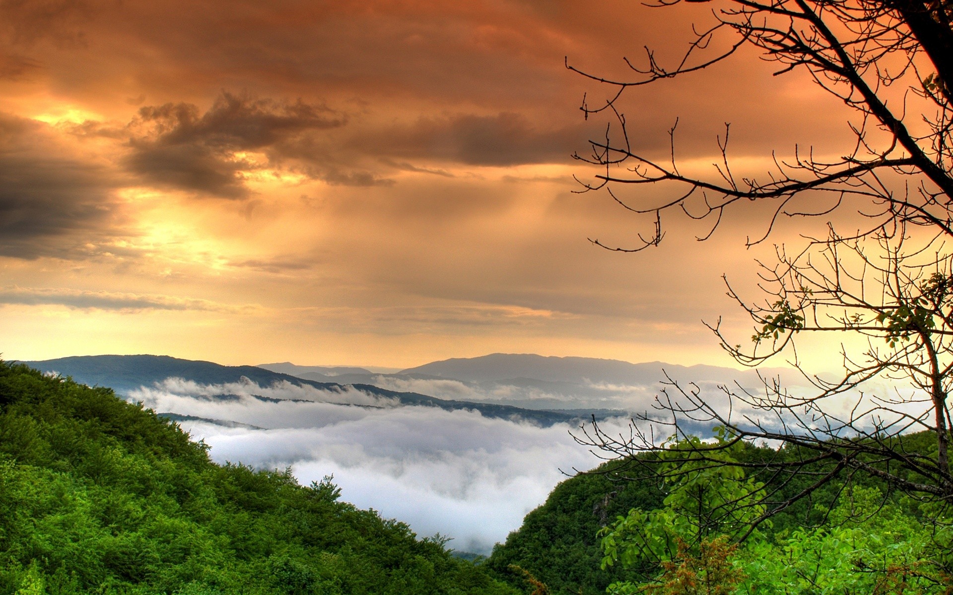 Un coucher de soleil scintillant se faufile à travers les nuages