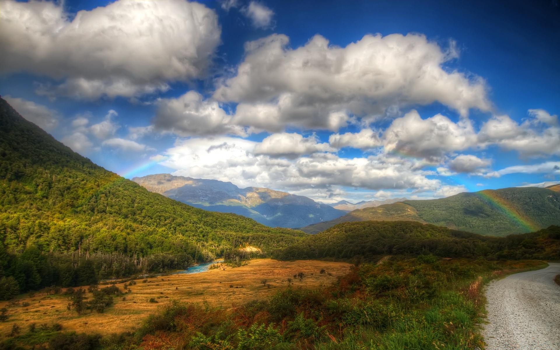 Arc-en-ciel dans les nuages dans les hautes montagnesArc-en-ciel dans les nuages dans les hautes montagnes