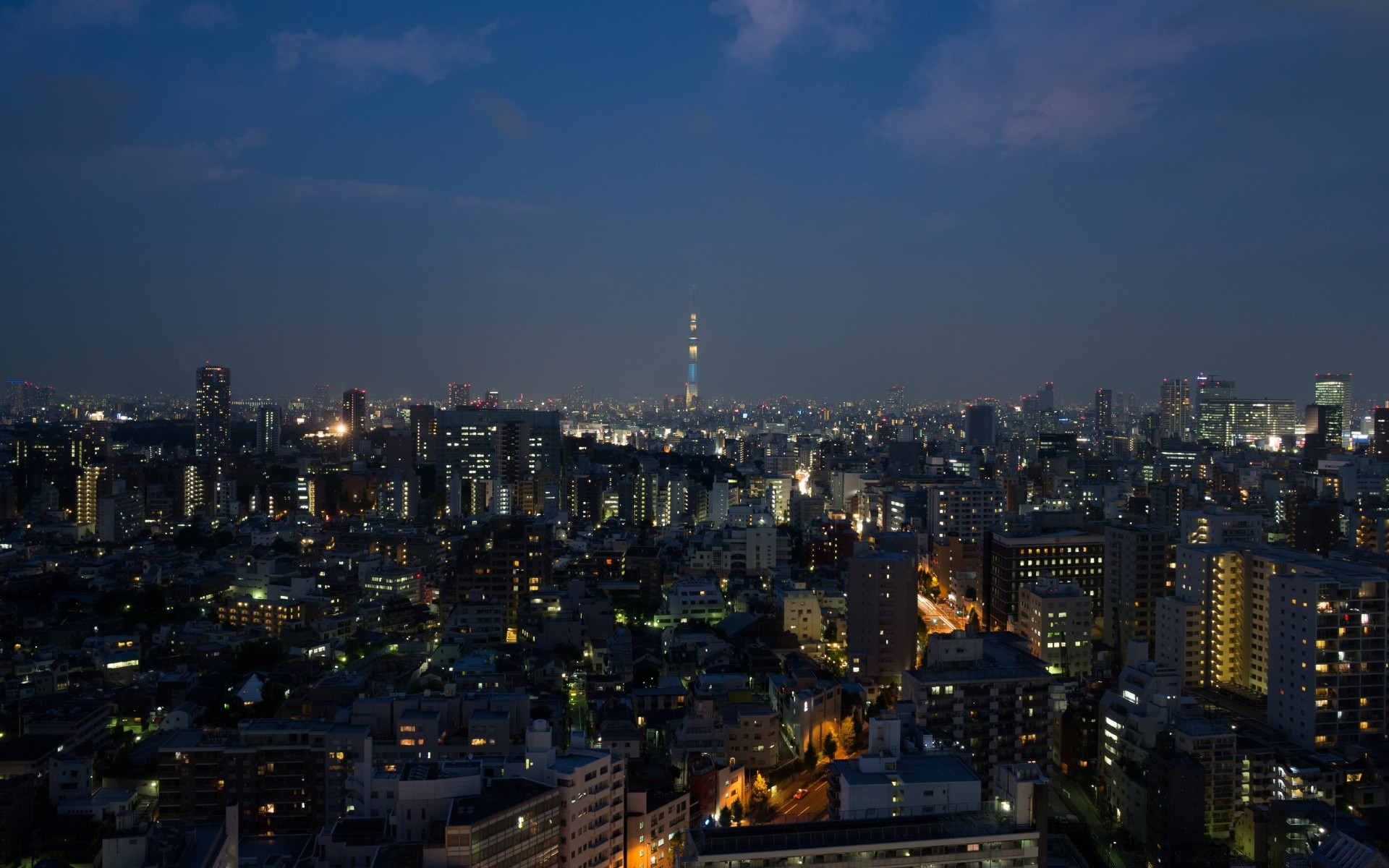 Les lumières de la ville de nuit remplissent les rues de lumière