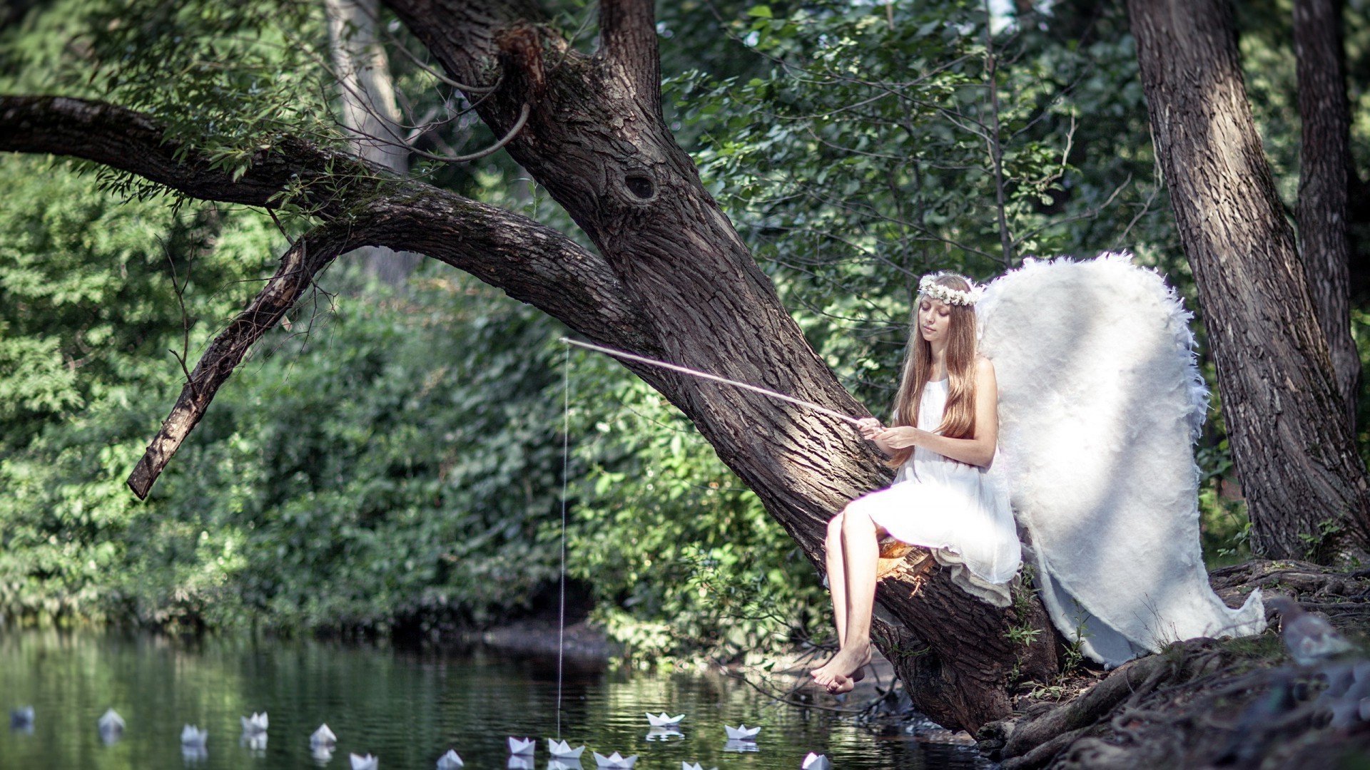 Del frost peint avec un sac dans la forêt près de l'arbre de noëlDel Frost peint avec un sac dans la forêt près de l'arbre de Noël