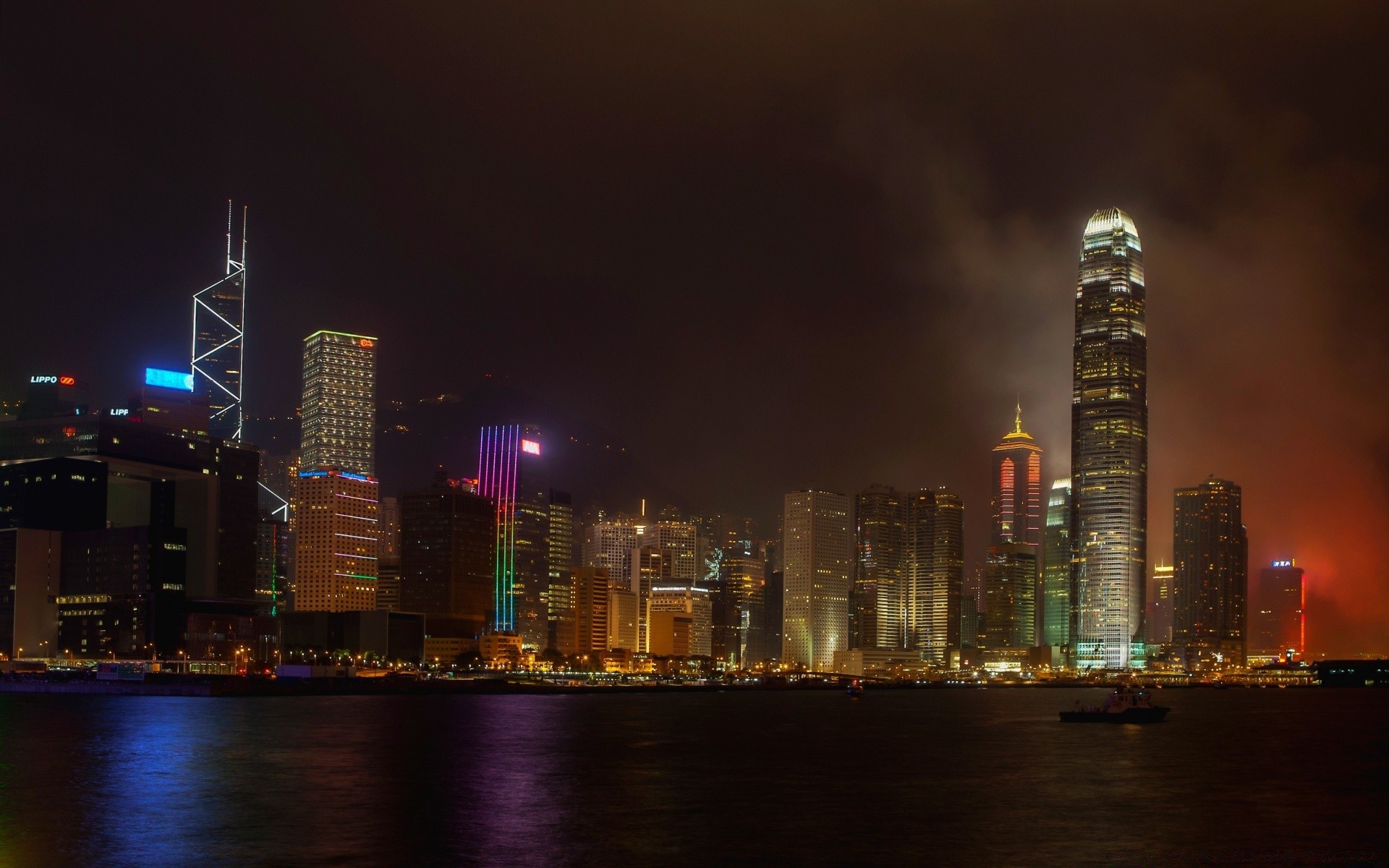 Ville de nuit. Gratte-ciel. Réflexion dans l'eau