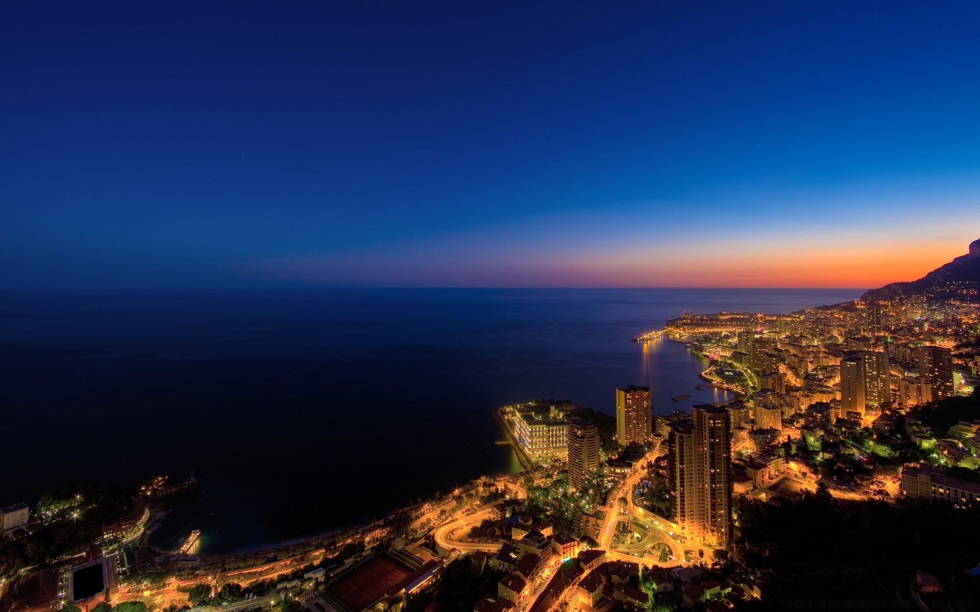 Paysage urbain de nuit sur fond de mer