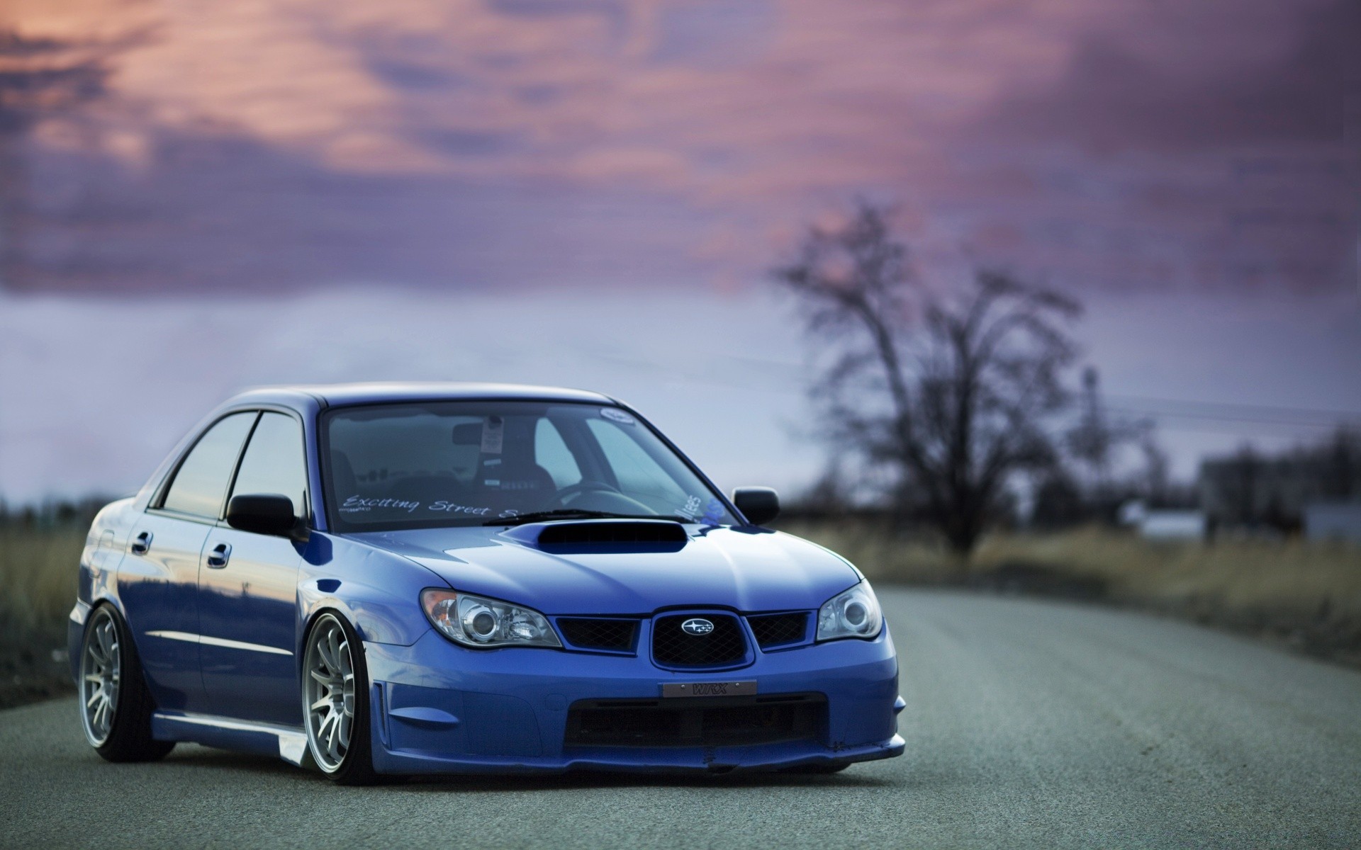 Voiture bleue dans les rues de la ville de nuit