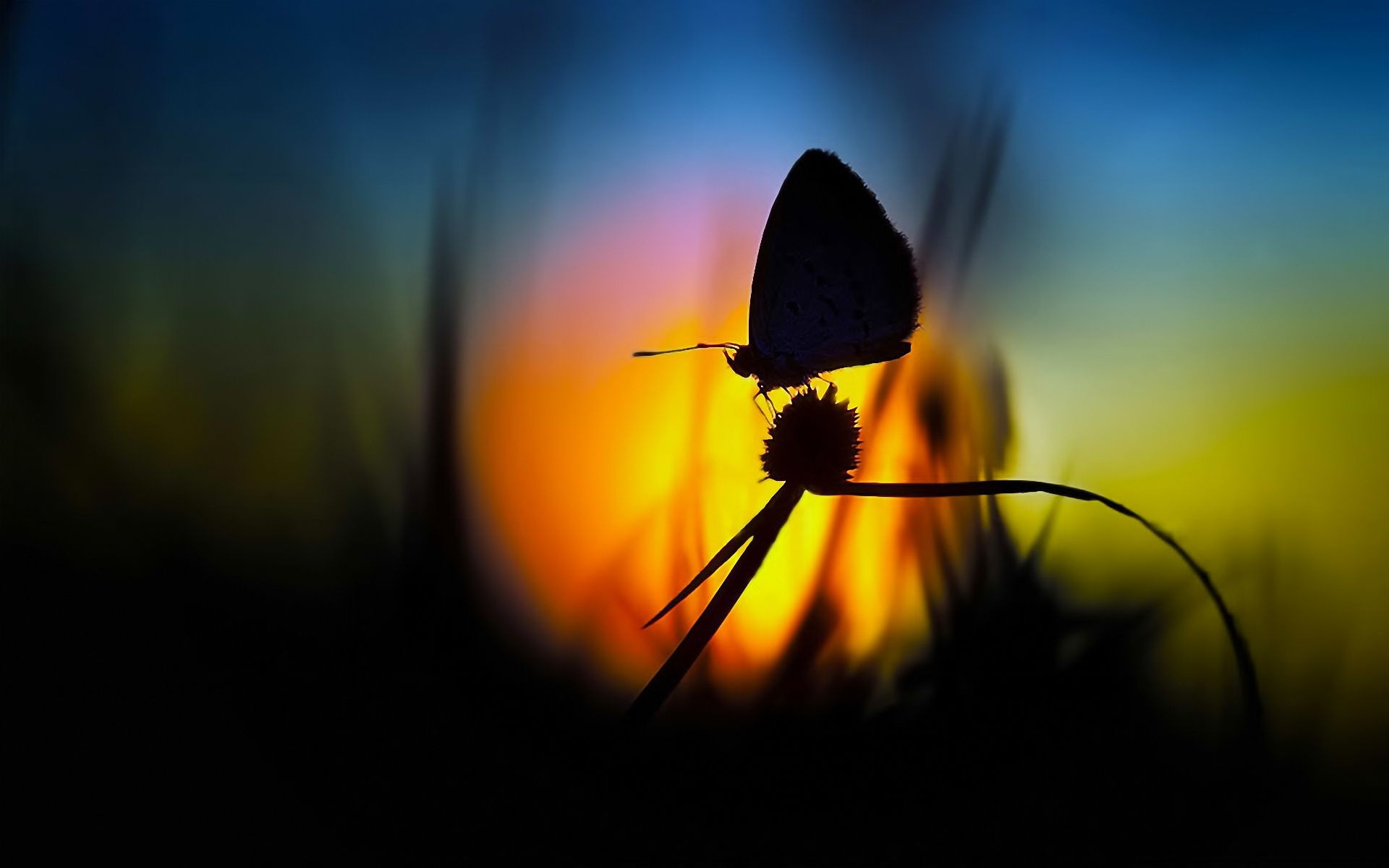 Papillon gracieux figé sur le fond du début de la journée d'été