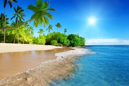 Paysage tropical: mer, forêt et ciel