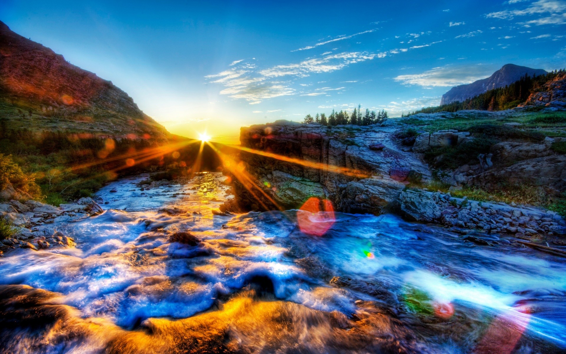 Paysage de fleurs, de montagnes et d'eau