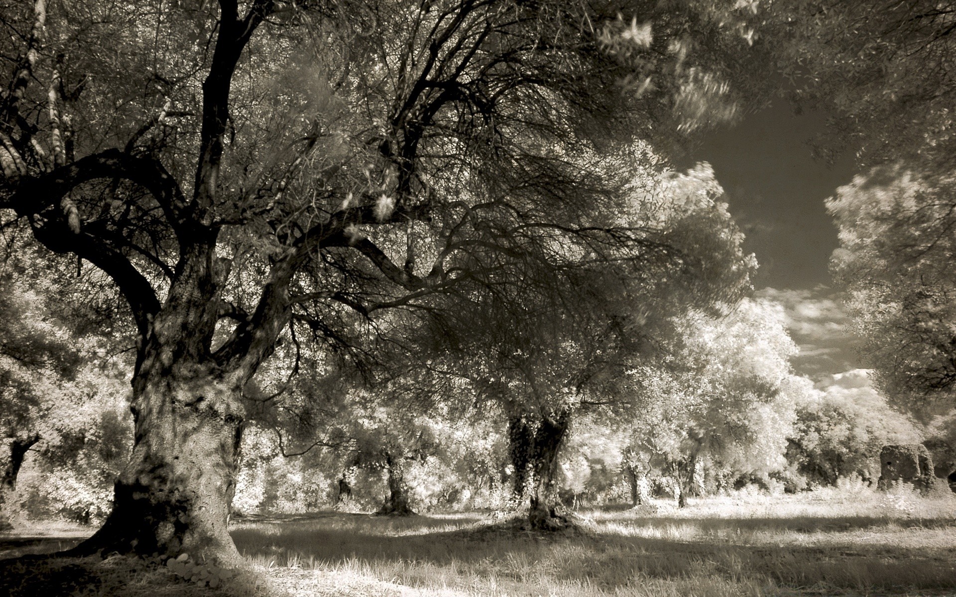 Paysage de forêt Monochrome dans le style Vintage