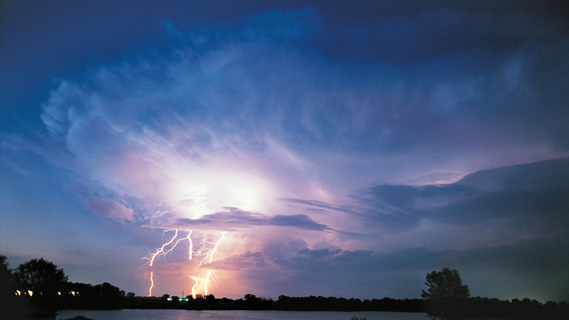 Paysage de coucher de soleil avec des éclairs d'oragePaysage de coucher de soleil avec des éclairs d'orage