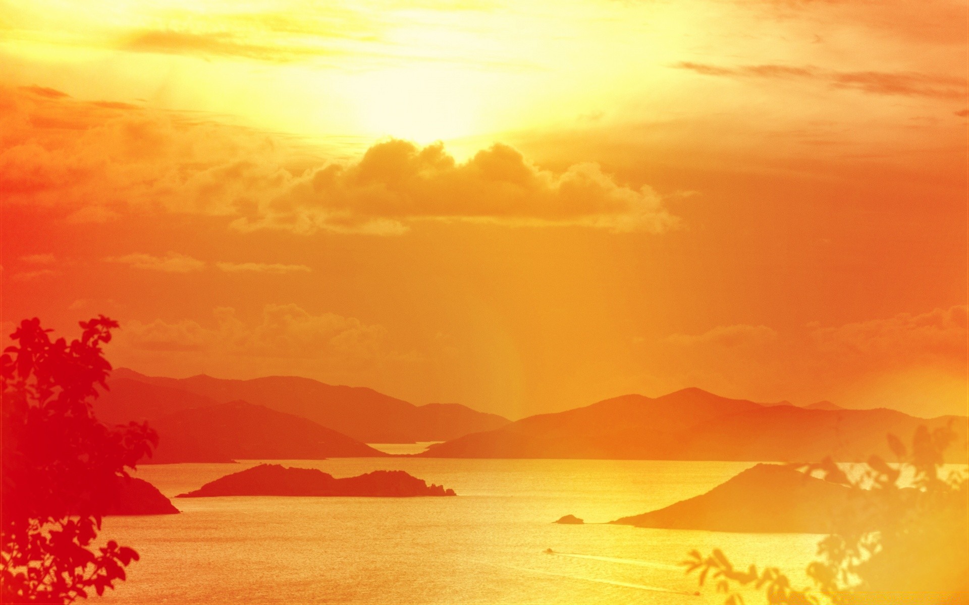 Coucher de soleil sur le paysage de l'île de soirée