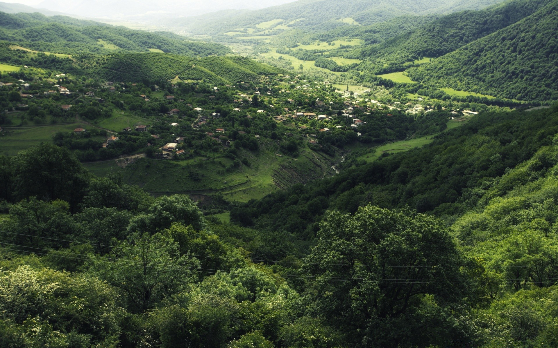Paysage de beauté inhabituelle avec la lune se cachant entre deux arbres à l'ombre