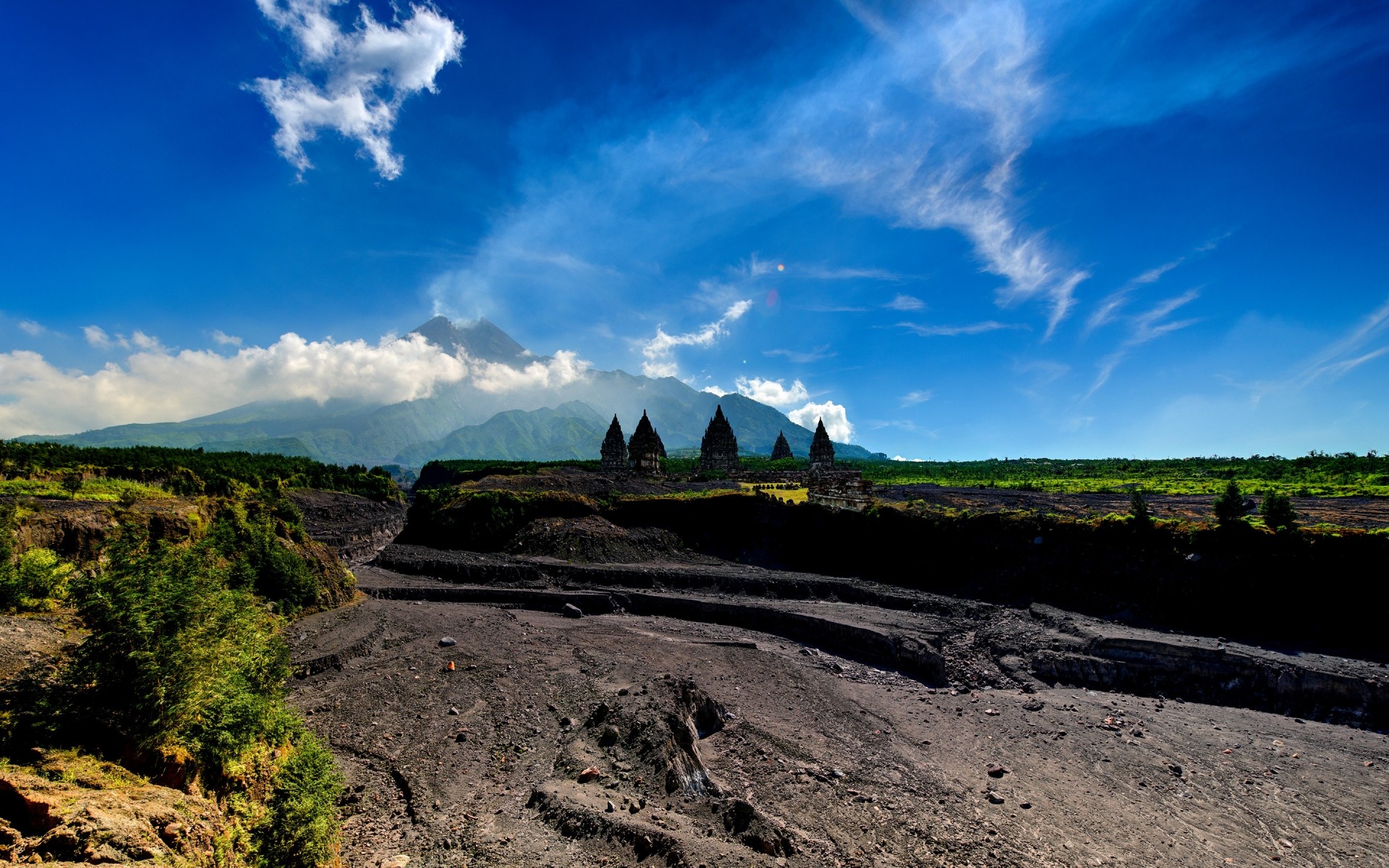 Paysage avec une bouteille avec la ville à l'intérieur flotte sur l'eau