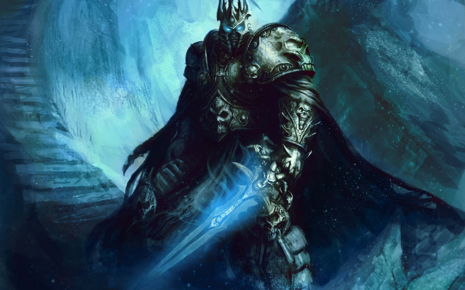 Chevalier noir fatal avec une épée rougeoyante sur fond glacé