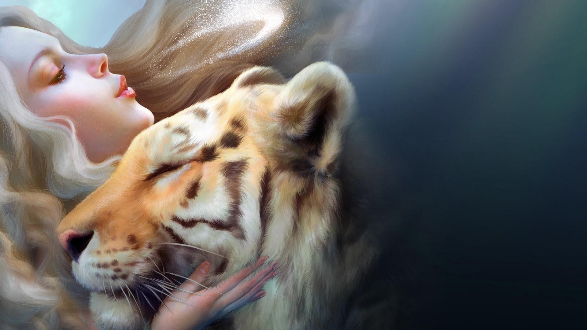 Blonde câlins avec un tigre rayé